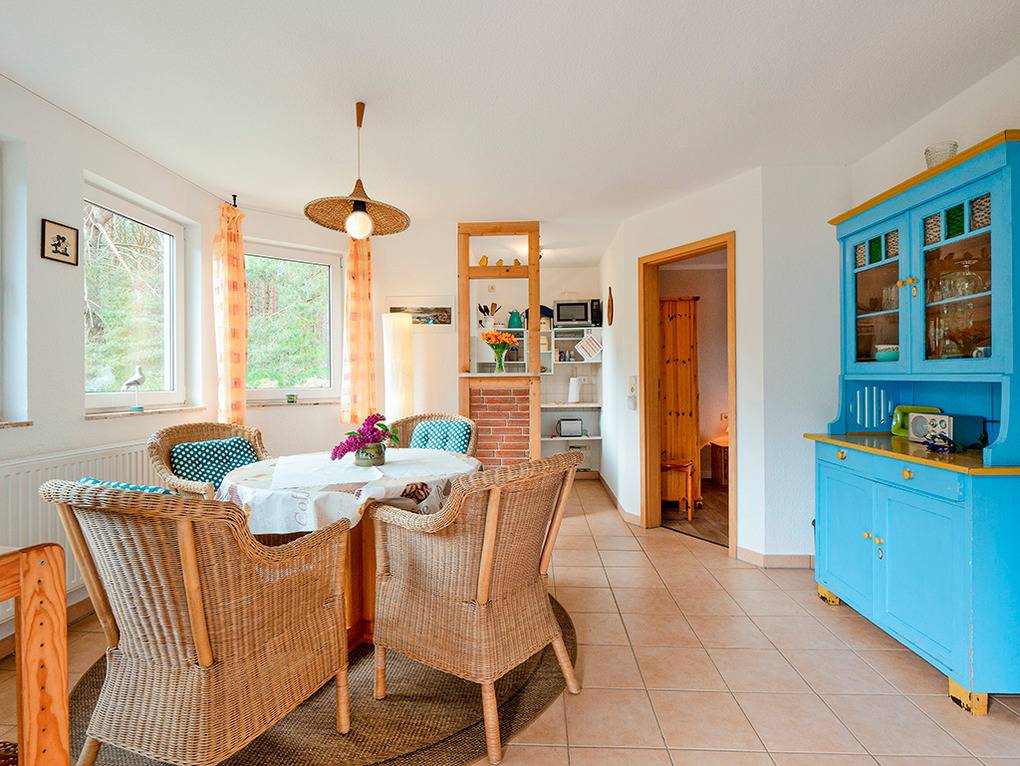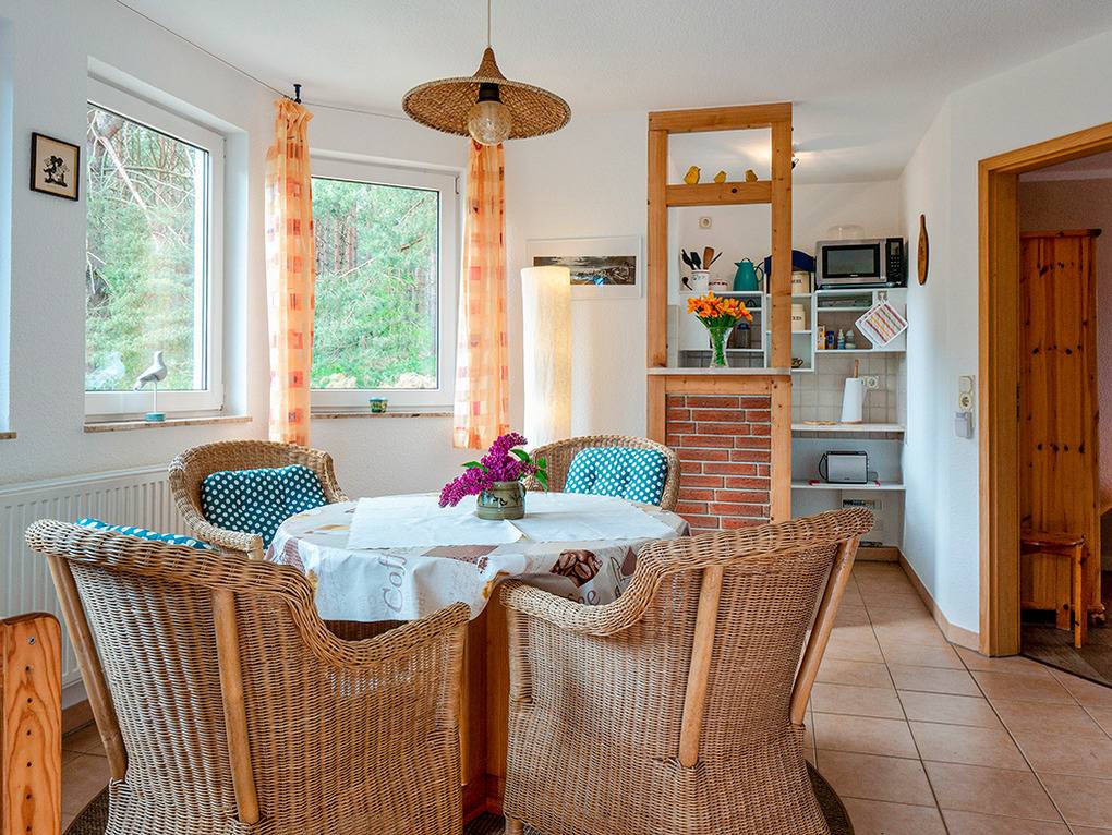 Nebenkosten 3 €/Pers./Tag (werden bei Buchung erhoben). Endreinigung 60 €. Kurtaxe. Bettwäsche leihbar 10 €/Pers (Bestellung, wird bei Buchung erhoben). Handtücher mitzubringen. Zusätzliche Leistungen 1 Pkw-Stellplatz im Preis inklusive. Kostenloser Internetzugang über W-Lan (schlechter Empfang im Wald). Kinder Hochstuhl ohne Berechnung. Haustier nicht erlaubt.Räume & Aufteilung