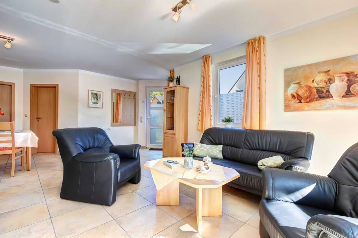 Die Ferienwohnung bietet auf 61 m² Platz für bis zu 4 Personen und ist ideal für Familien. Zwei Schlafzimmer, ein Badezimmer sowie eine offene Wohnküche mit Geschirrspüler sorgen für Komfort. Zur Ausstattung gehören WLAN, Flachbild-TV, Parkplatz und Fahrradabstellmöglichkeiten. Terrasse und Garten laden zum Entspannen ein, Hunde sind willkommen. Ruhige Lage, Strand ca. 700 m und Supermarkt ca. 400 m entfernt. Perfekt für einen erholsamen Ostseeurlaub.