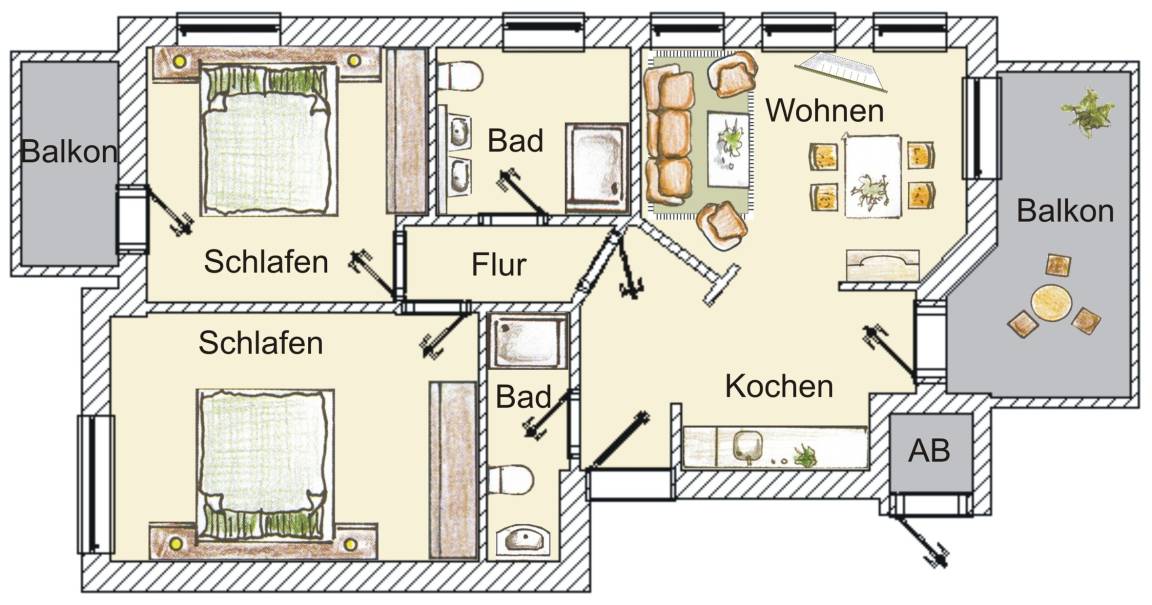 94 m² Ferienwohnung ∙ 2 Schlafzimmer ∙ 4 Gäste