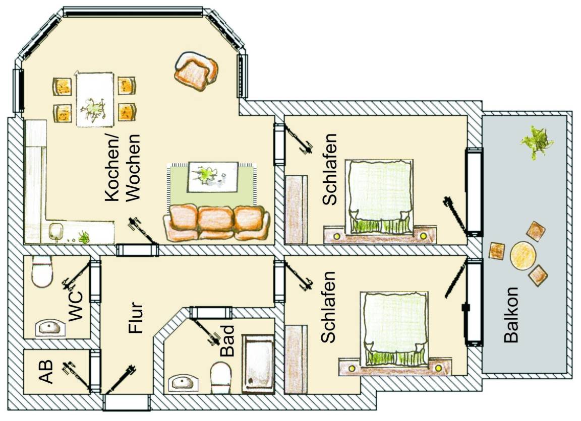 66 m² Ferienwohnung ∙ 2 Schlafzimmer ∙ 4 Gäste