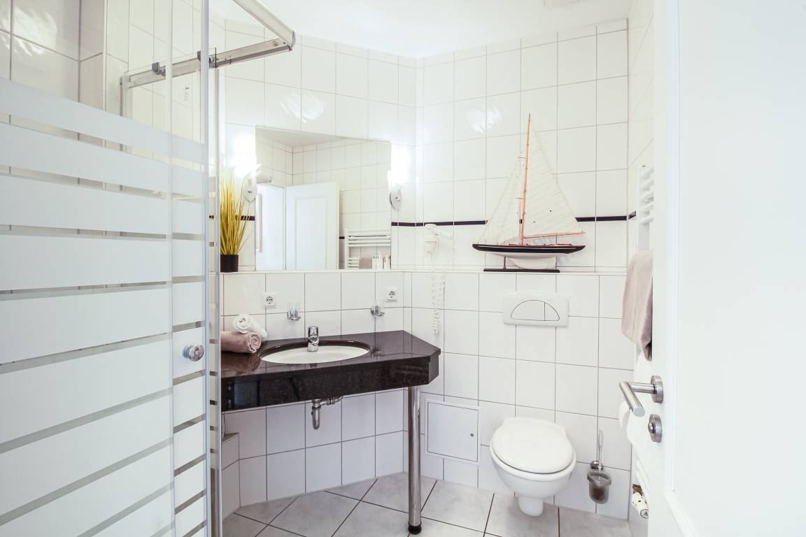 Die bezaubernde Wohnung erstreckt sich auf der dritten Etage in der Villa Frisia. Bereits beim Betreten des geräumigen Flurs wird man von einem Gefühl von Großzügigkeit und Offenheit begrüßt. Die Tür zum Wohnzimmer öffnet sich zu einem atemberaubenden Raum, der zum Verweilen einlädt. Zwei einladende Sofas schaffen eine gemütliche Atmosphäre, perfekt für entspannte Abende. Ein Fernseher bildet das Zentrum dieses Rückzugsortes der Behaglichkeit. Die nahtlose Verbindung zum offenen Küchenbereich ist ein Meisterwerk des modernen Designs. Die Küche selbst ist mit einer eindrucksvollen Palette von Annehmlichkeiten ausgestattet, darunter ein Geschirrspüler, ein elegantes Cerankochfeld und ein zuverlässiger Backofen. Ein wundervoller Esstisch, groß genug für vier Personen, fügt dem Raum eine gesellige Note hinzu, wo kulinarische Erlebnisse zu unvergesslichen Momenten werden. Der Blick aus den Fenstern der Wohnung ist schlichtweg sensationell und gewährt einen Panoramablick über die Dächer von Bansin. Dieses natürliche Gemälde kann in seiner vollen Pracht vom Balkon aus genossen werden. Ein großer Tisch mit vier bequemen Stühlen lädt dazu ein, die Aussicht zu bewundern und gleichzeitig die frische Luft zu genießen. Die Wohnung beherbergt zwei charmante Schlafzimmer. In einem der Schlafzimmer befindet sich ein großes Doppelbett mit getrennten Matratzen der Größe 90x200, das ultimativen Schlafkomfort verspricht. Im anderen Schlafzimmer warten zwei Einzelbetten derselben Größe (90x200), perfekt arrangiert für eine flexible Unterkunft. Ein Badezimmer, komplett ausgestattet mit einer erfrischenden Dusche, einem WC und einem stilvollen Waschbecken, vervollständigt die Annehmlichkeiten dieser Ferienwohnung. Zusätzlich ergänzt ein separates Gäste-WC das Angebot an Annehmlichkeiten. Mit ihrem beeindruckenden Raumangebot, der spektakulären Aussicht und den durchdachten Details verspricht sie einen unvergesslichen Aufenthalt inmitten der Schönheit von Bansin.