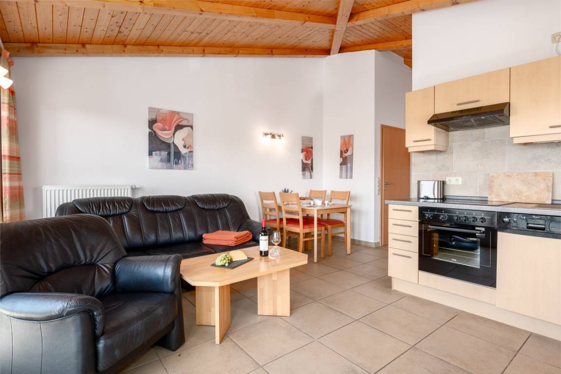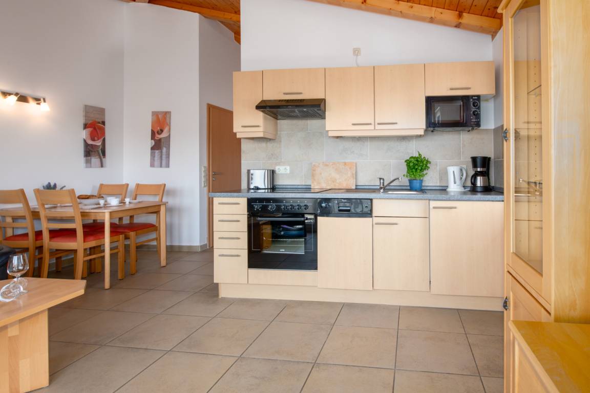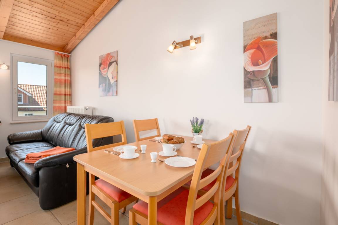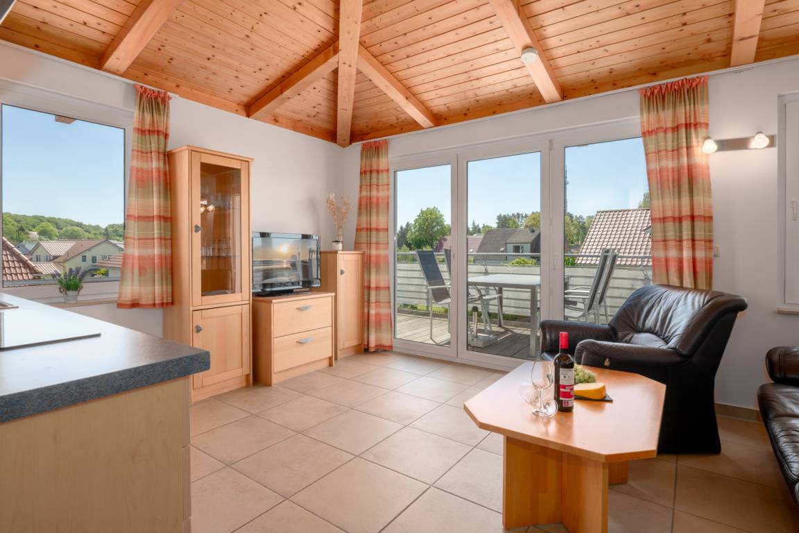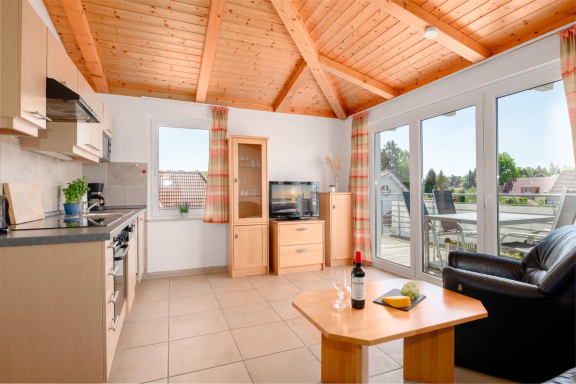 Die Dachgeschosswohnungen sind geeignet für bis zu 2 Personen und verfügen über einen großen Balkon sowie eine Wohnfläche von 48 m². Sie sind Nichtraucherwohnungen und bieten eine gehobene Ausstattung mit einer komplett ausgestatteten Küche, inklusive Mikrowelle, Backofen und Spülmaschine. Zudem gibt es SAT-TV in den Wohnungen. Das Badezimmer ist mit einer Dusche und einem WC ausgestattet. Ein Parkplatz ist im Preis inbegriffen. Moderne Dachgeschosswohnung mit 48 m² für bis zu 2 Personen. Großer Balkon, Nichtraucher, komfortable Ausstattung mit voll ausgestatteter Küche (Backofen, Mikrowelle, Spülmaschine) sowie SAT-TV. Badezimmer mit Dusche und WC. Inklusive Parkplatz, ideal für Paare und einen entspannten Urlaub