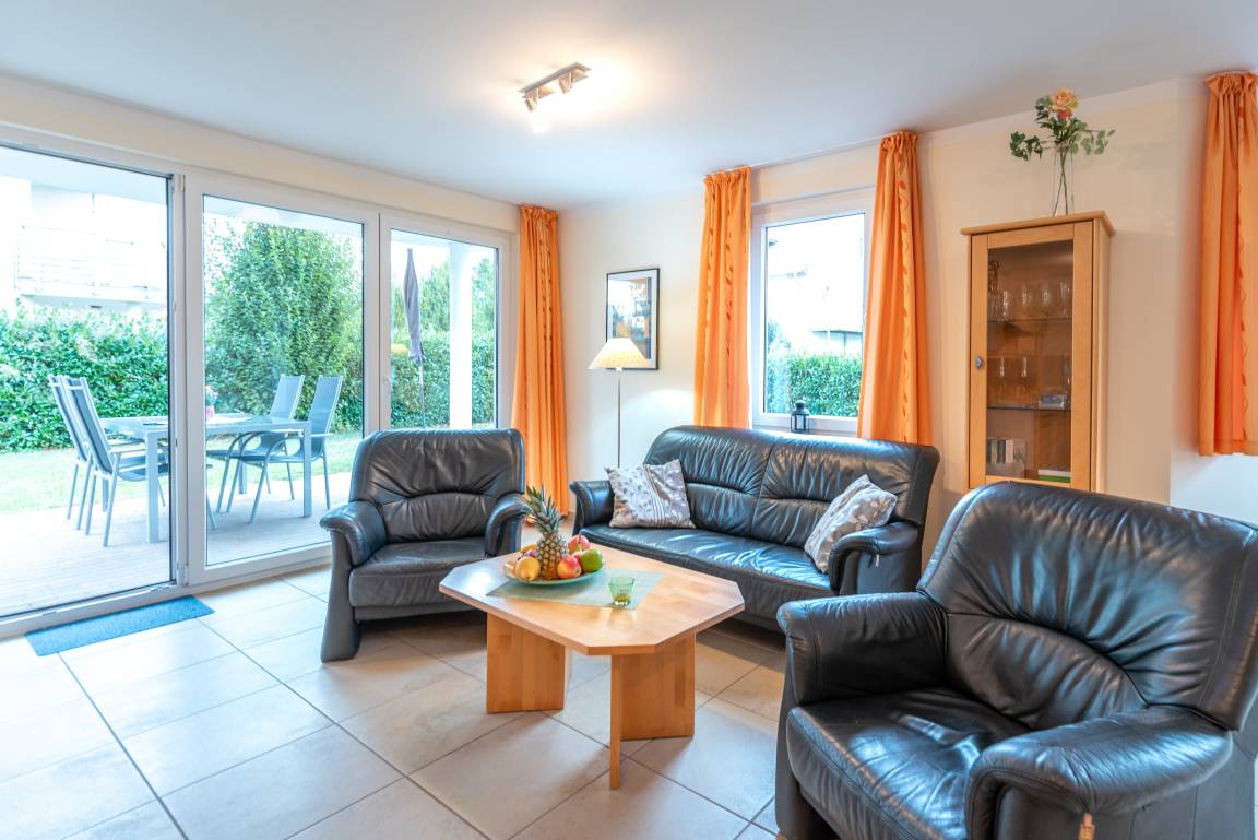 Willkommen in der geräumigen Erdgeschosswohnung 1 (links) im Appartementhaus „Am Sonnenaufgang" – der perfekte Ort für einen entspannten Usedom-Urlaub.