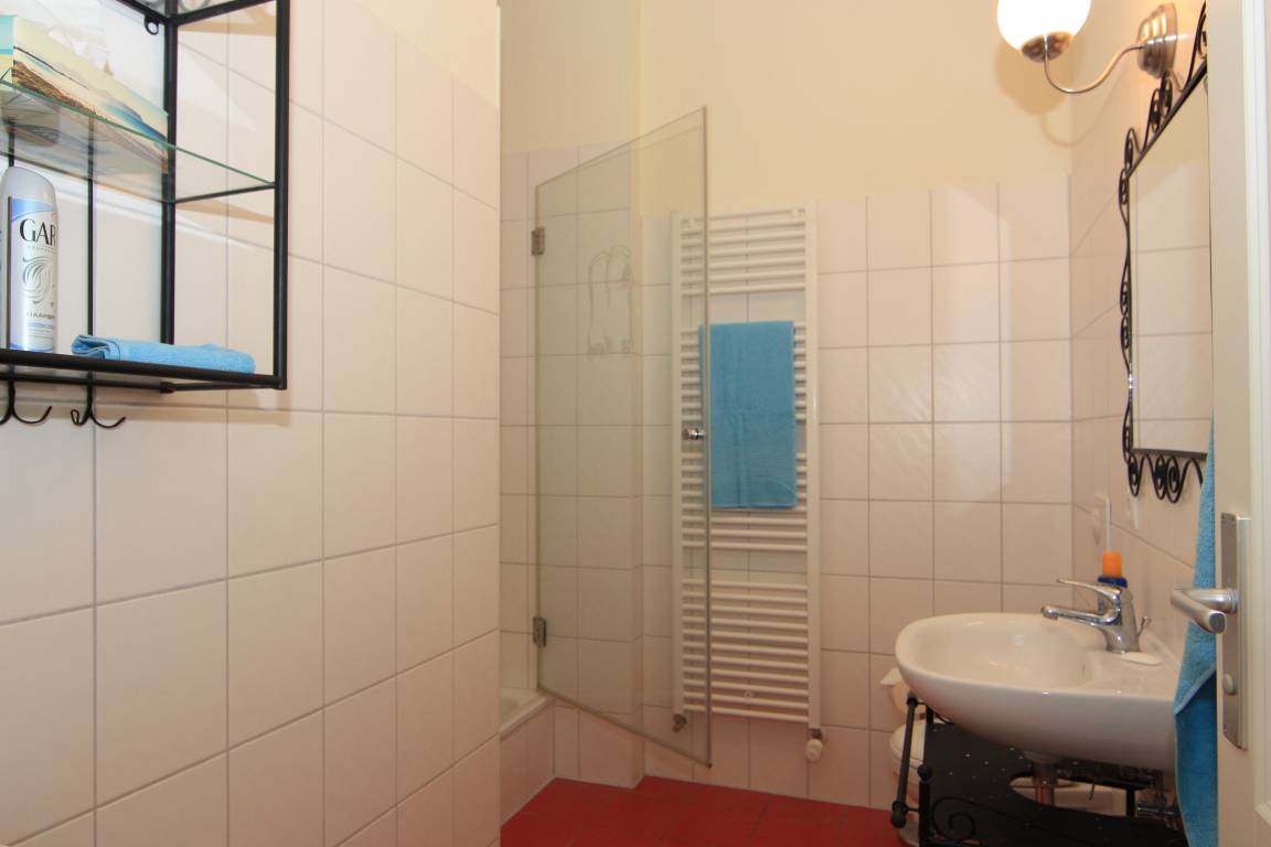 Dieses ca. 58 qm große Drei-Zimmer-Appartement im 1. Obergeschoss bietet maximal 5 Personen Platz für einen erholsamen Urlaub. Im Wohnraum finden Sie eine gemütliche Sitzgarnitur mit Schlaffunktion (1,25 x 2,00 m) sowie TV und Radio. Die Küchenzeile ist offen im Wohnraum integriert und mit Geschirrspüler, Ceranfeld mit Backofen, Kühlschrank, Mikrowelle etc. ausgestattet. Die Mahlzeiten können am großen Tisch in der lichtdurchfluteten, geschlossenen Loggia (Fenster lassen sich öffnen), die zum Süden gerichtet ist, eingenommen werden. Das größere Schlafzimmer ist mit einem Doppelbett mit getrennten Matratzen (90 x 200) und reichlich Schrankraum, das kleinere Schlafzimmer mit einem Tagesbett (nutzbar als Einzel-oder Doppelbett) eingerichtet. Das innenliegende Bad ist ausgestattet mit Dusche, Waschbecken/WC. Ein Pkw-Stellplatz befindet sich im Parkhaus in ca. 150 m Entfernung zur Villa Mailin.