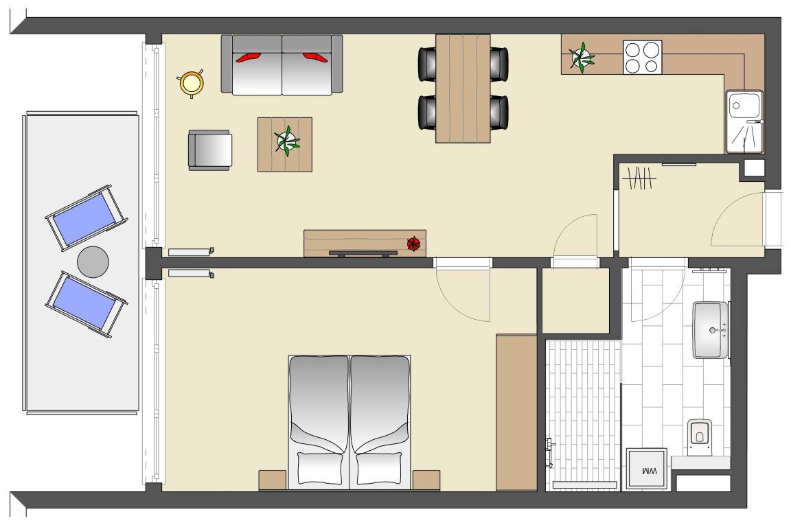 58 m² Ferienwohnung ∙ 1 Schlafzimmer ∙ 4 Gäste