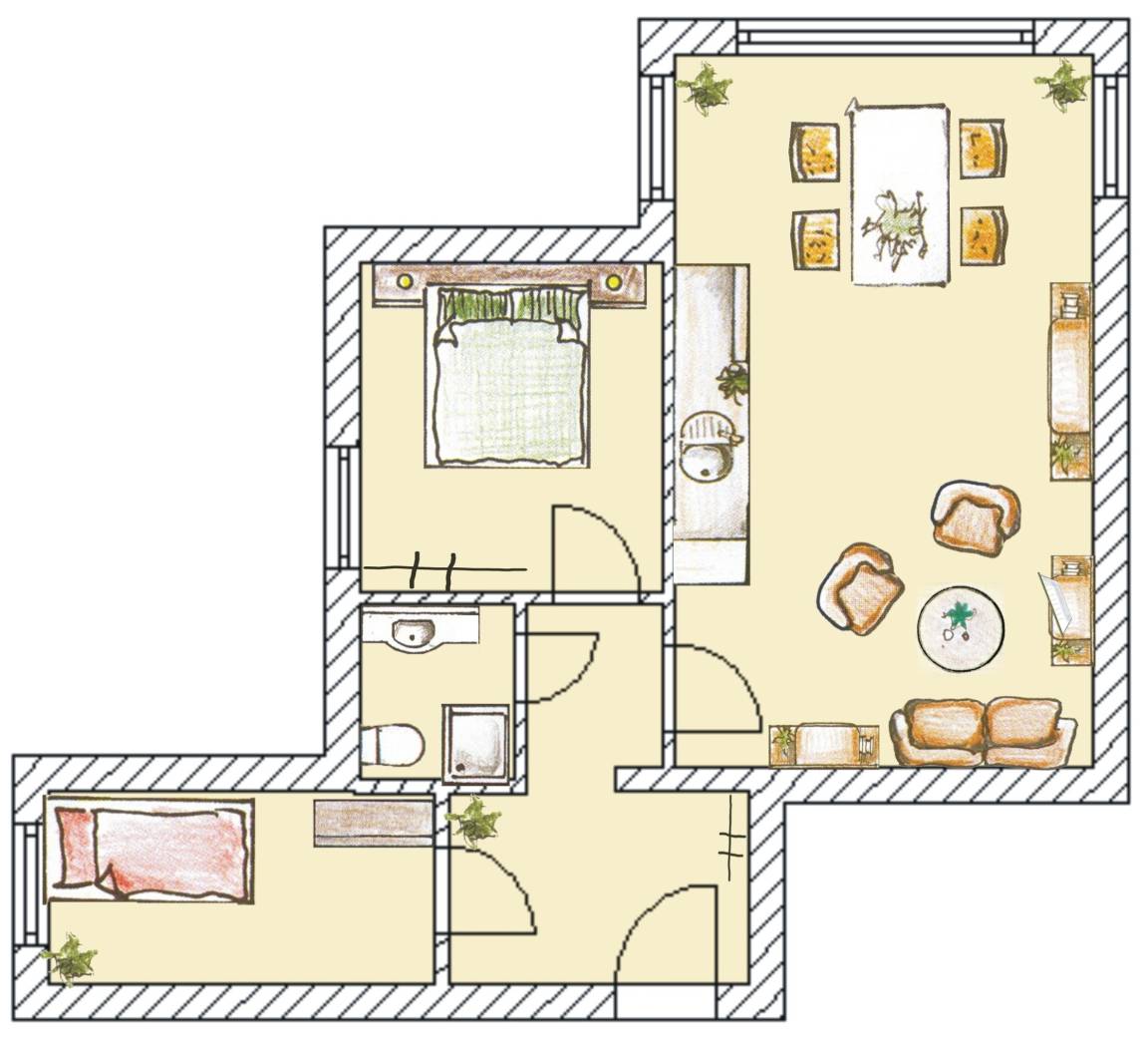 58 m² Ferienwohnung ∙ 2 Schlafzimmer ∙ 3 Gäste