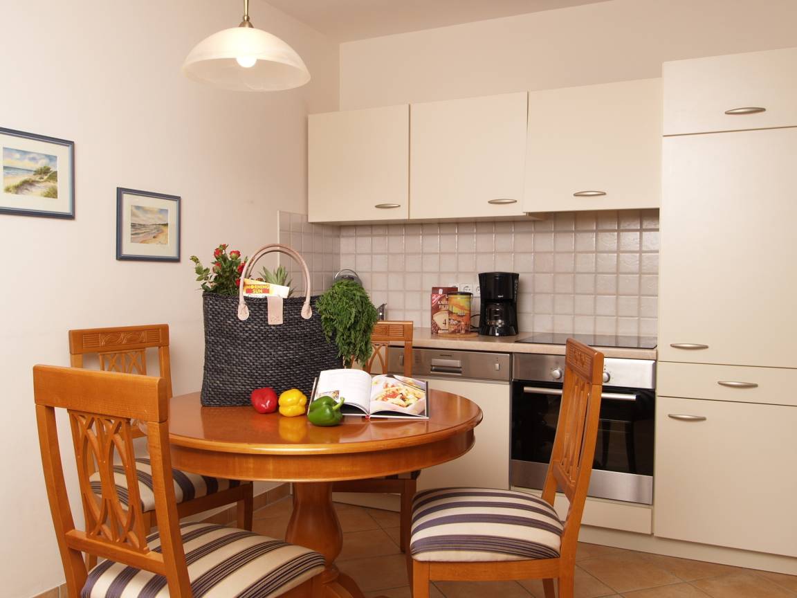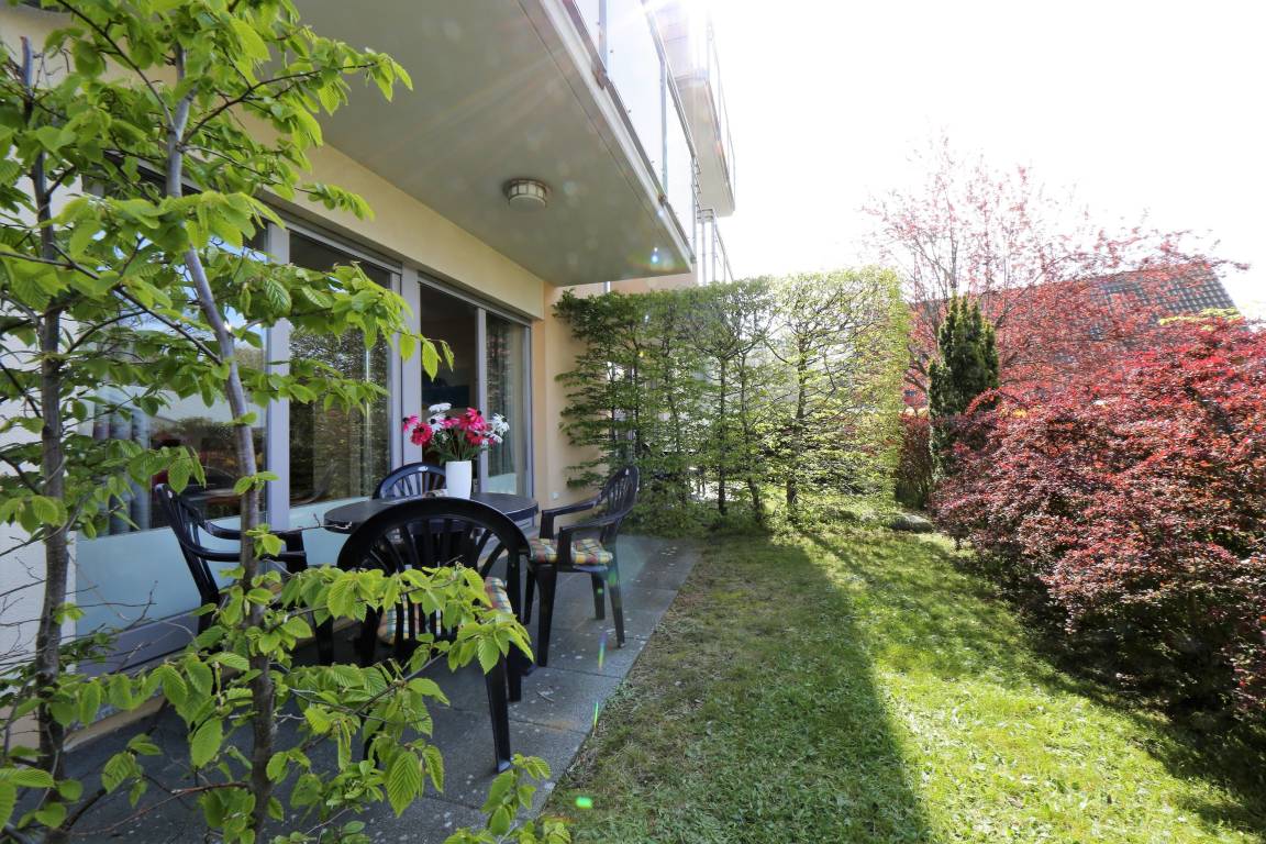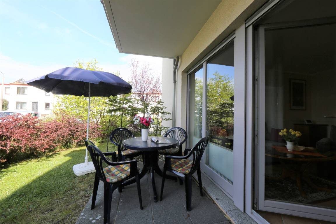 Dieses 60 qm große 3-Zimmer Appartement im Erdgeschoss eignet sich für 2 bis maximal 4 Personen. Im Wohnzimmer finden Sie eine gemütliche Couchecke mit Radio/TV, sowie einen separaten Essplatz. Die Vollküche mit Geschirrspüler, Ceranfeld, Backofen pp. ist ebenfalls offen im Wohnraum integriert. Die zum Süden ausgerichtete Terrasse ist vom Wohnraum zu begehen. Das größere Schlafzimmer ist mit einem Doppelbett mit getrennten Matratzen, das kleinere mit zwei Einzelbetten jeweils 0,90 x 2,00 m und einem Kleiderschrank ausgestattet. Im Wohnzimmer kann die Doppelbettcouch zum Schlafen genutzt werden. Das Bad bietet Dusche, sowie Badewanne und einen Doppelwaschtisch. Das WC mit Waschgelegenheit ist separat. Der Pkw-Stellplatz befindet sich auf dem Grundstück und ist der Wohnung zugeordnet. Im Keller finden Sie einen Fahrrad-Abstellraum, Münzwaschmaschine und Münztrockner.