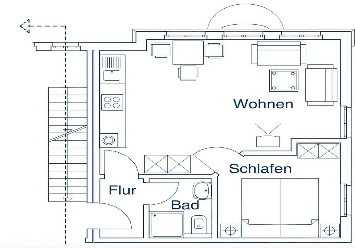 40 m² Ferienwohnung ∙ 1 Schlafzimmer ∙ 2 Gäste