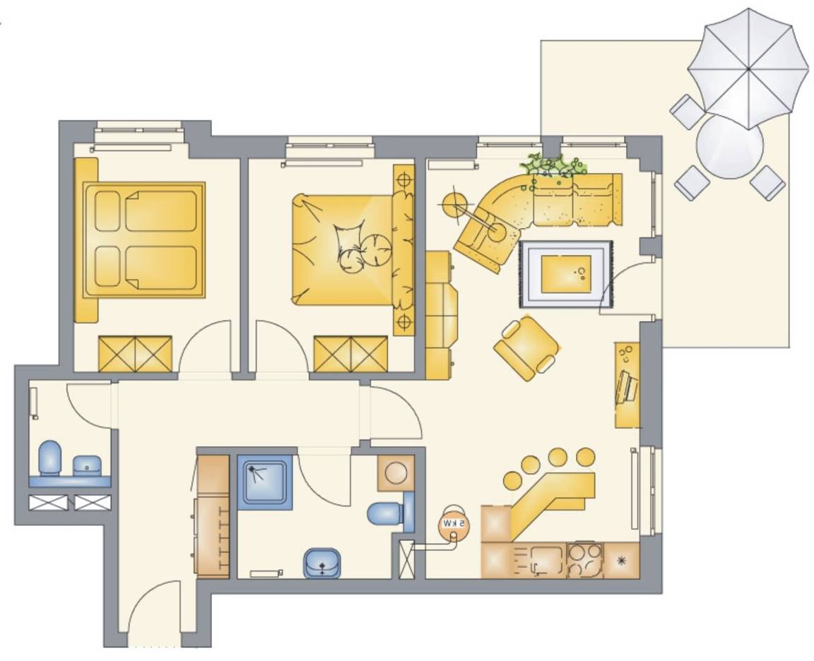 66 m² Ferienwohnung ∙ 2 Schlafzimmer ∙ 4 Gäste