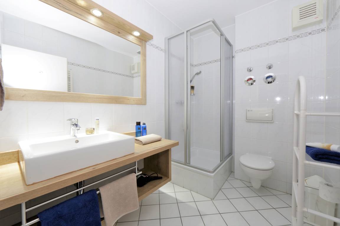 Dieses moderne 44 qm große 2-Zimmer-Appartement liegt im 1.Obergeschoss mit einem zum Süden ausgerichteten Balkon, der vom Wohnraum begehbar ist. Der gemütliche Wohnbereich ist mit einer Couch mit Schlaffunktion (Liegefläche 160 x 200), Couchtisch und TV eingerichtet. Die moderne Küchenzeile, ausgestattet mit Ceranherd ohne Backofen, Mikrowelle, Kühlschrank mit Gefrierfach, Geschirrspüler etc. und angrenzendem Essplatz, ist offen im Wohnraum integriert. Im Schlafzimmer steht den Gästen für einen erholsamen Schlaf ein Doppelbett mit getrennten Matratzen (80 x 200) zur Verfügung. Ausreichend Schrankraum ist selbstverständlich. Das Bad ist mit Dusche/WC und Waschbecken ausgestattet. Ein Pkw-Stellplatz befindet sich auf dem Grundstück und ist der Wohnung zugeordnet. Ein Fahrradständer steht den Gästen im Kellergeschoss ebenso zur Verfügung wie Waschmaschine und Trockner gegen Gebühr.