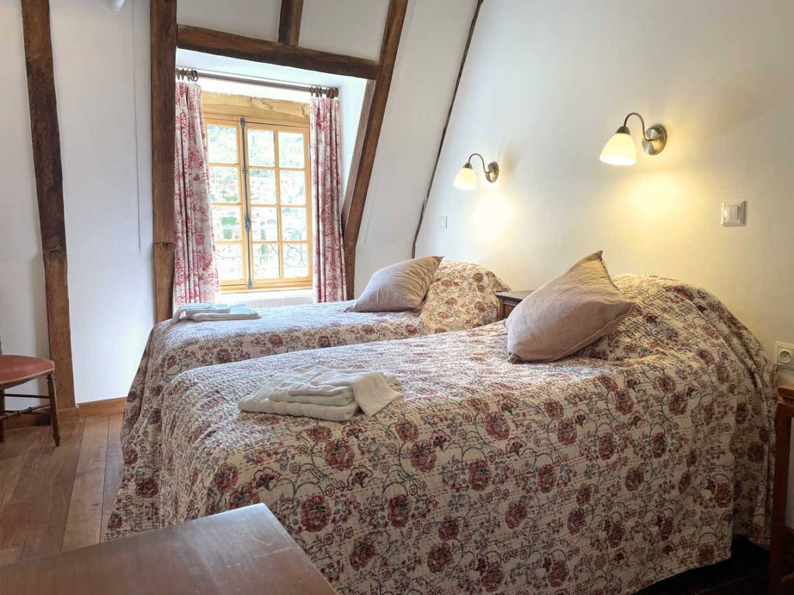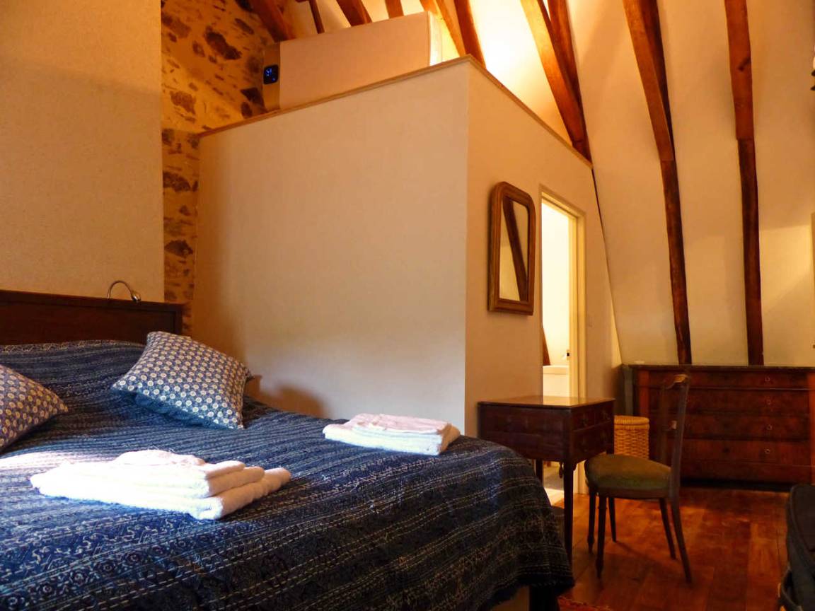 Der Turm: (Zugang über die Fußgängerbrücke oder den Hof) Die Gîte muss sich nicht für die Türme des Château d'Hérisson schämen, da sie selbst einen hat! Im Erdgeschoss finden Sie eine Waschküche. Über eine Wendeltreppe finden Sie im 1. Stock des Zwischengeschosses ein Schlafzimmer mit 1 Bett von 140 cm und im Erdgeschoss davon 2 Betten von 90 cm und ein Zustellbett.