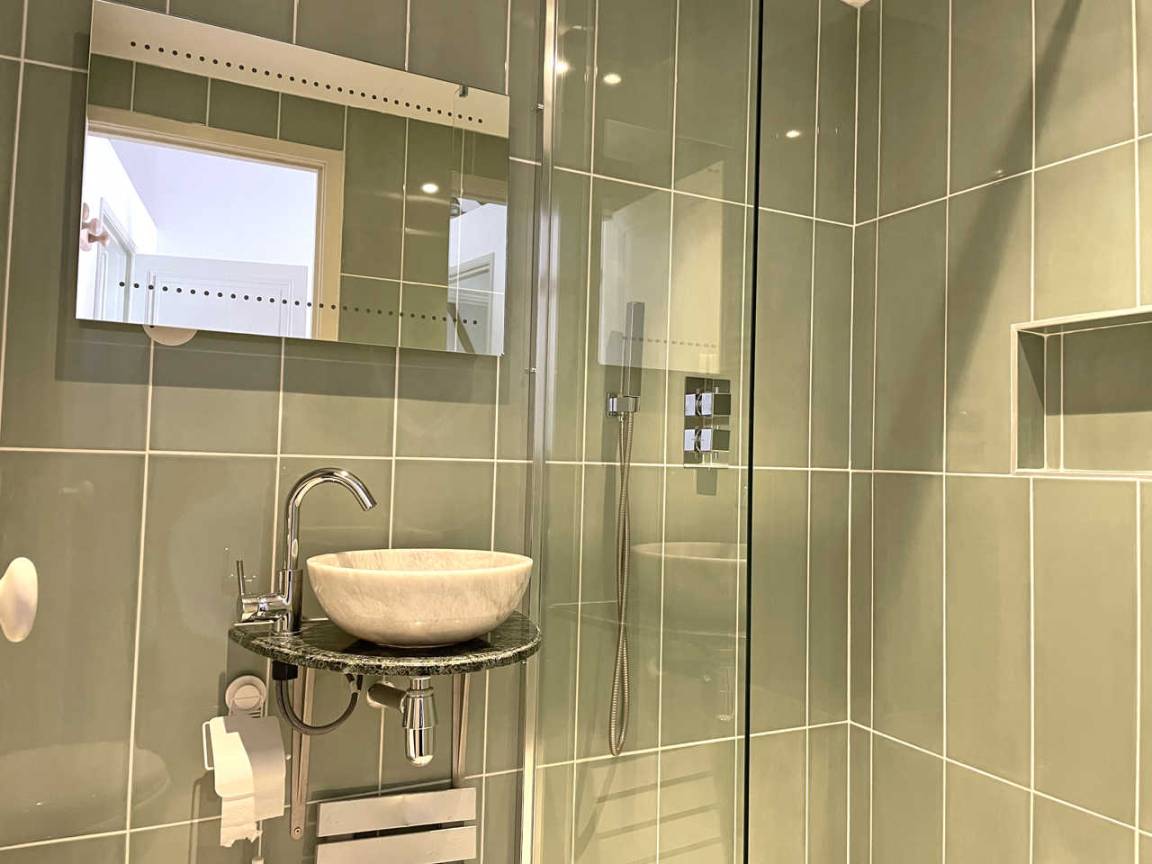2. Stock: 2 Schlafzimmer mit 1 Bett 180 (oder 2 x 90) jeweils mit Badezimmer mit ebenerdiger Dusche u