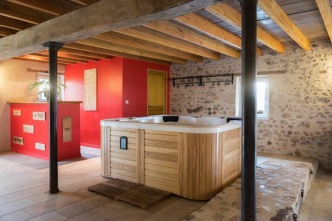 In der Nähe des mittelalterlichen Dorfes Hérisson gelegen, wurde dieses ehemalige Bauernhaus der Familie komplett in eine erstklassige Gîte mit privatem Swimmingpool und Wellnessbereich (Spa, Sauna und Fitnessgeräte) umgebaut. Sie werden dieses Haus mit seiner nüchternen und modernen Dekoration und seinen Außenbereichen (Grünfläche 9000 m², Innenhof 1000 m², möblierte Terrasse 50 m²) genießen. Der ideale Ort für einen Aufenthalt, der Komfort, Ruhe und Entspannung im Herzen des Bourbonnais verbindet. Das Ganze ist für Gäste komplett privatisiert. Erdgeschoss: Küche, Essbereich, Wohnzimmer mit Holzofen, 2 Schlafzimmer (2 Einzelbetten 90x190) und ein Schlafzimmer (1 Bett 160x200) mit eigenem Duschbad und WC, Blick auf den Garten. Badezimmer (Dusche und Badewanne). unabhängige Toilette. Elektroheizung. Carport. Tronçais-Wald 5 km entfernt. Vallon-en-Sully (Autobahnausfahrt A71) in 5 km Entfernung.
