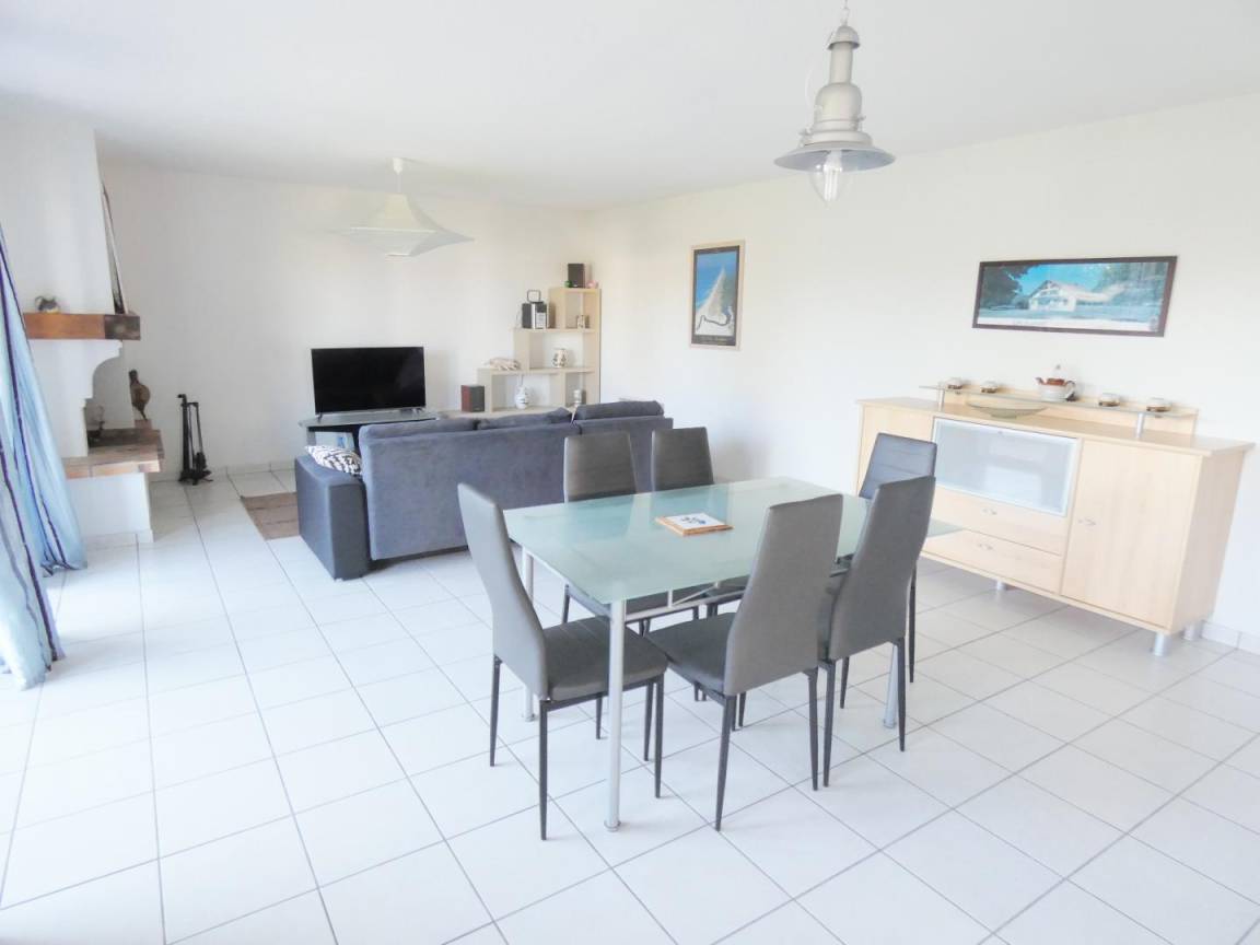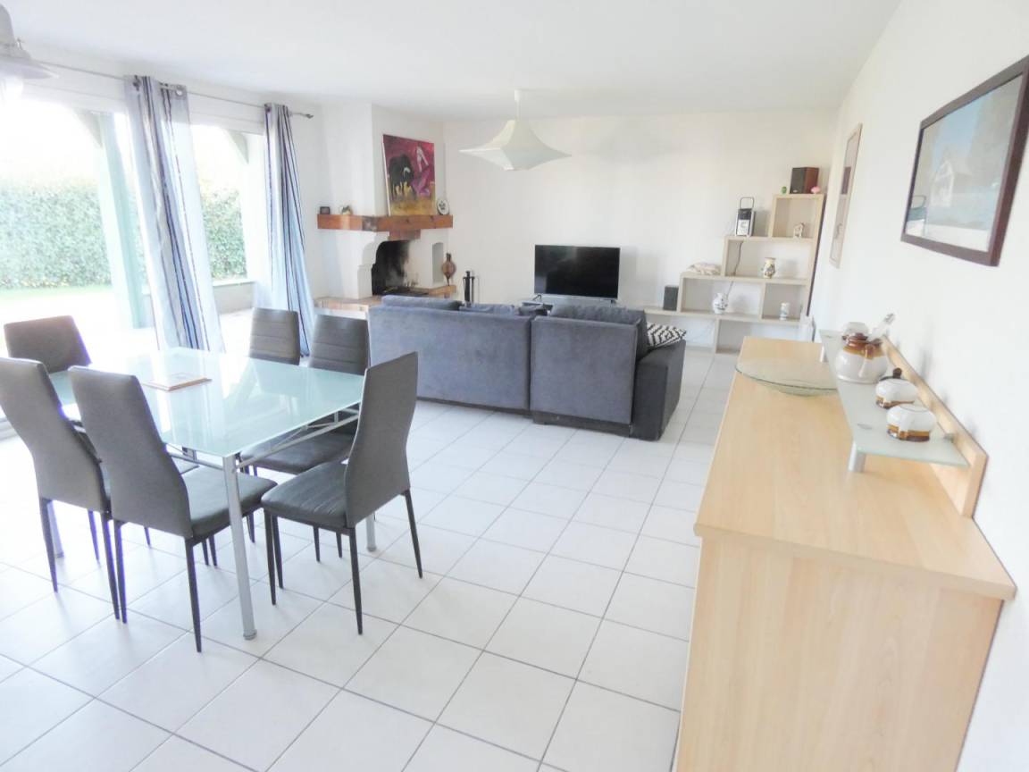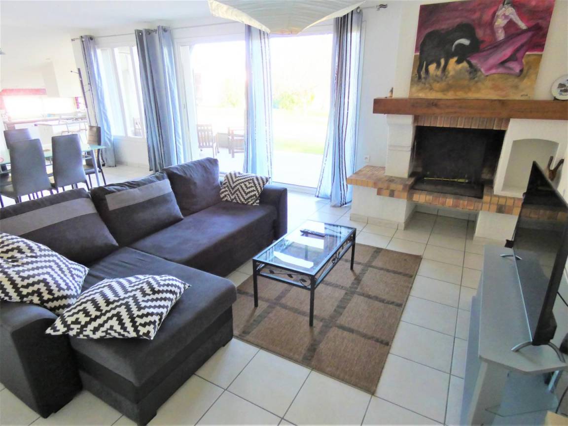 „Grande maison style Landaise trés lumineuse par ses grandes baies vitrées donnant sur la foret proche avec le chant des oiseaux pour compagnie.“