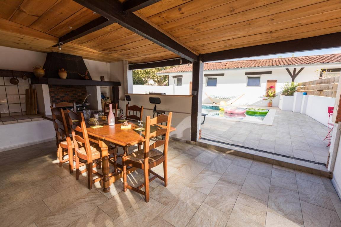„Un superbe gîte avec tout le confort pour trois familles, soit 12 pers. Salles de bain, chambres et cuisine agreablesLa piscine, la cuisine d'été avec plancha ou le barbecue ont largement et utilisés. Le grand salon a laissé place aux jeux de cartes et de décoration pour les enfants, grace a sa grande table, au frais (!) durant les période brûlantes des débuts d'après midi. Et le coin TV nous a permis de profiter des JO !Magnifiques vacances“