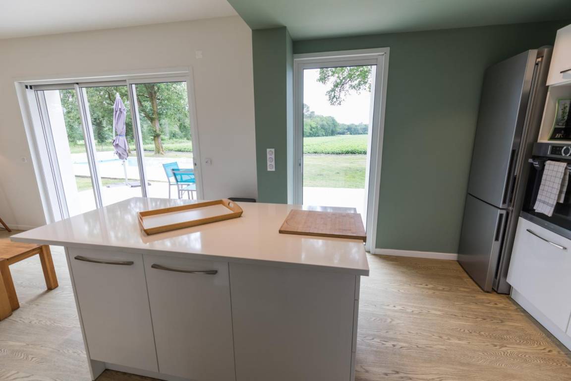 „Une maison spacieuse conforme à l’annonce. Une qualité très appréciable des équipements intérieur, ceci dans un cadre verdoyant propice à la détente. Piscine au sel avec grande terrasse, terrain de pétanque, rien ne manque pour de belles vacances. Je recommande vivement.“
