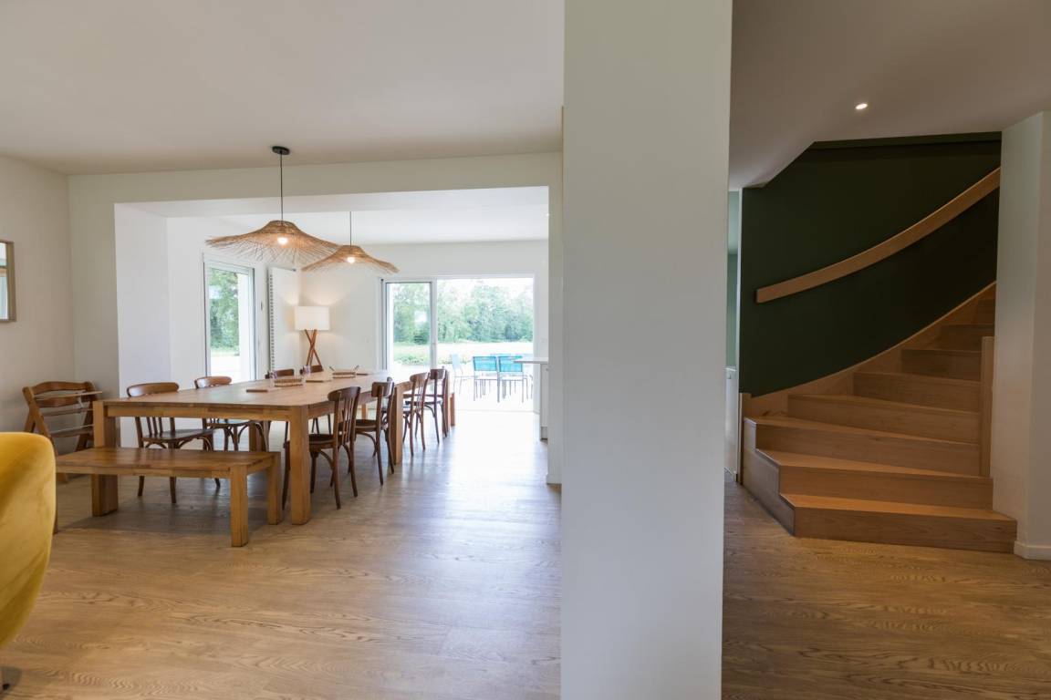 „Le gîte est très spacieux, bien agencé, bien décoré. Les escaliers sont sécurisés pour les enfants. L'électroménager de la cuisine est performant et tout confort. Nous avons été très bien accueilli. Piscine chauffée agréable et spacieuse. Petit bémol sur la balançoire inutilisable. La maison est propre mais à certains endroits on pourrait faire mieux. Merci pour tout“