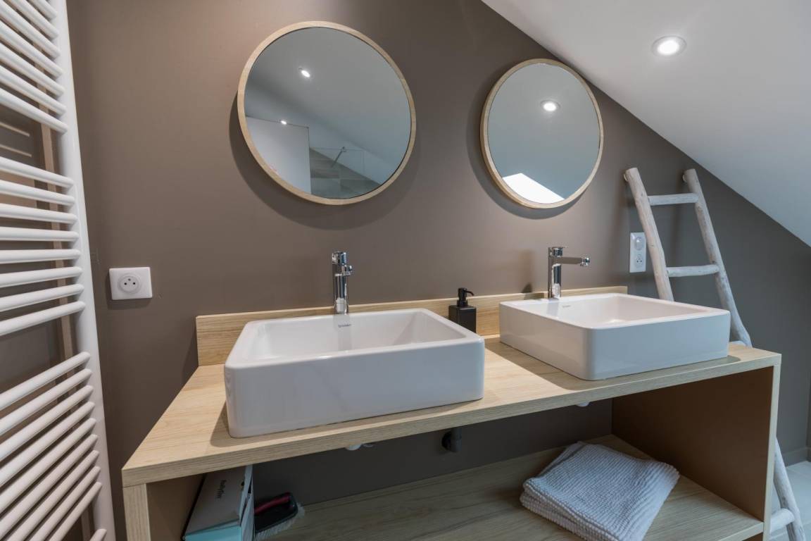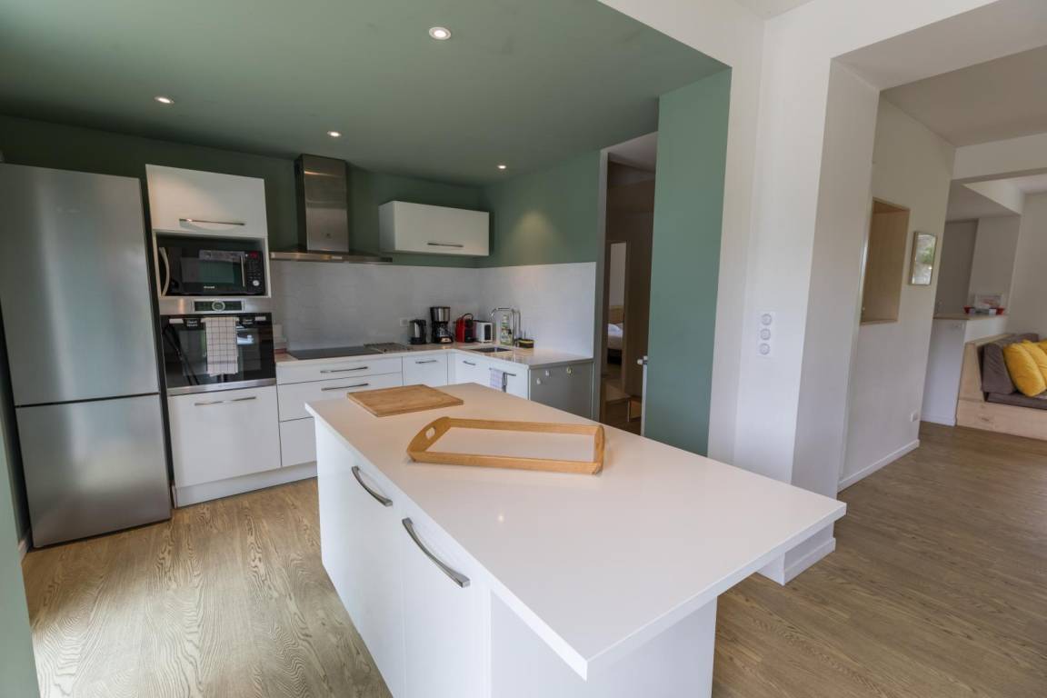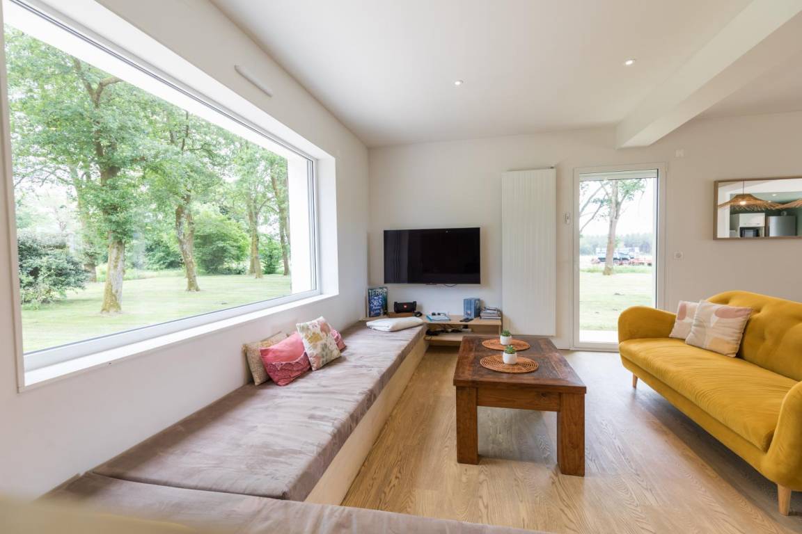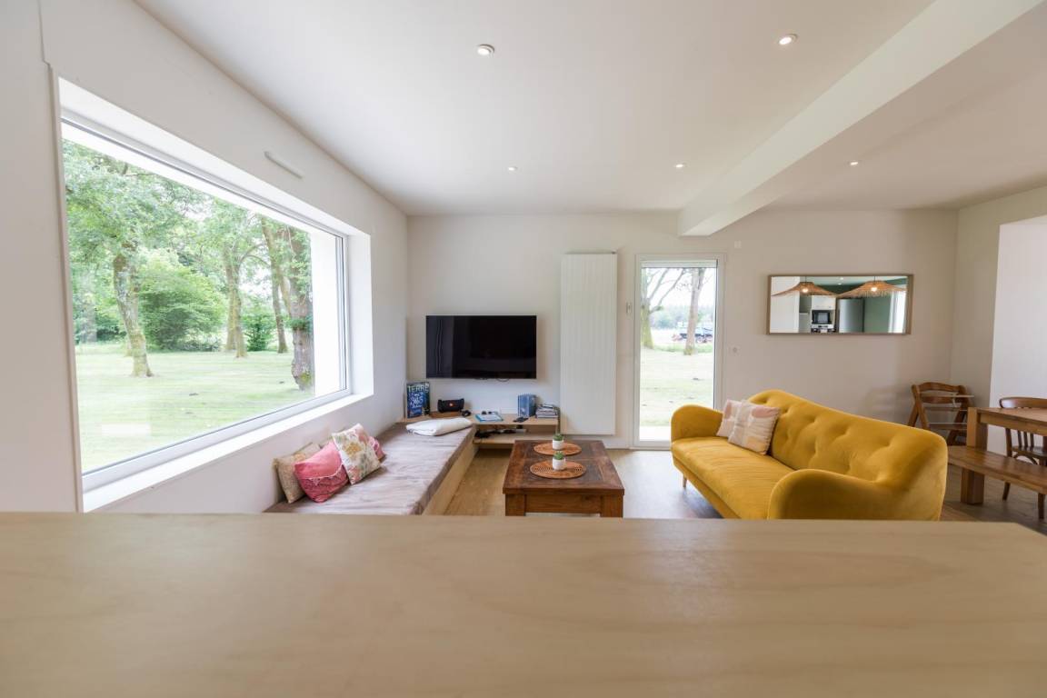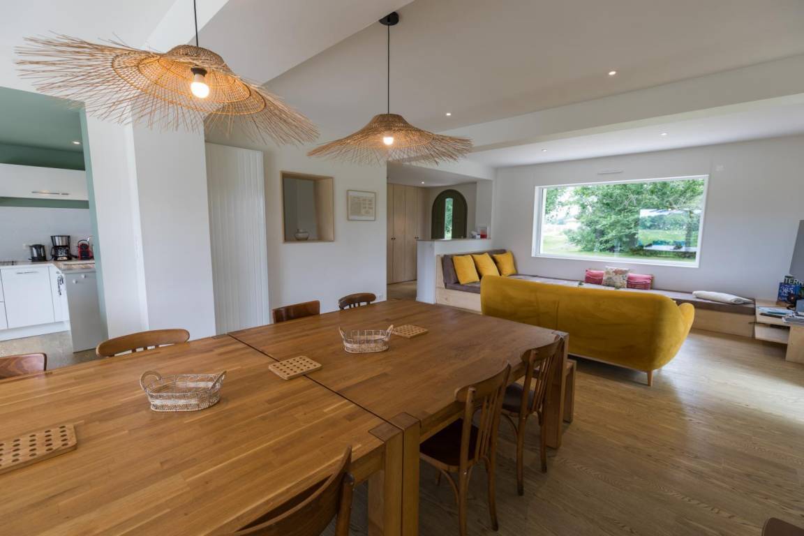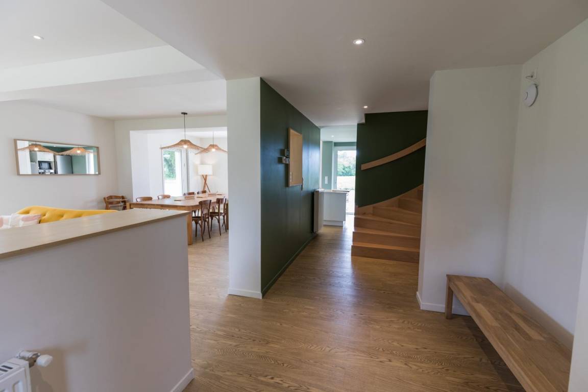 „Aménagement fonctionnel et agréable, le parc autour de la maison est magnifique. Comme demandé, la maison était bien chauffée à notre arrivée. L'équipement cuisine nous a bien convenu, il manque peut-être quelques verres. Les baies vitrées dans le séjour ont été très appréciées du matin au soir, pour la luminosité et la vue sur le parc. La salle de séjour est toutefois bruyante, mais par beau temps, ce n'a pas été un problème envahissant.“