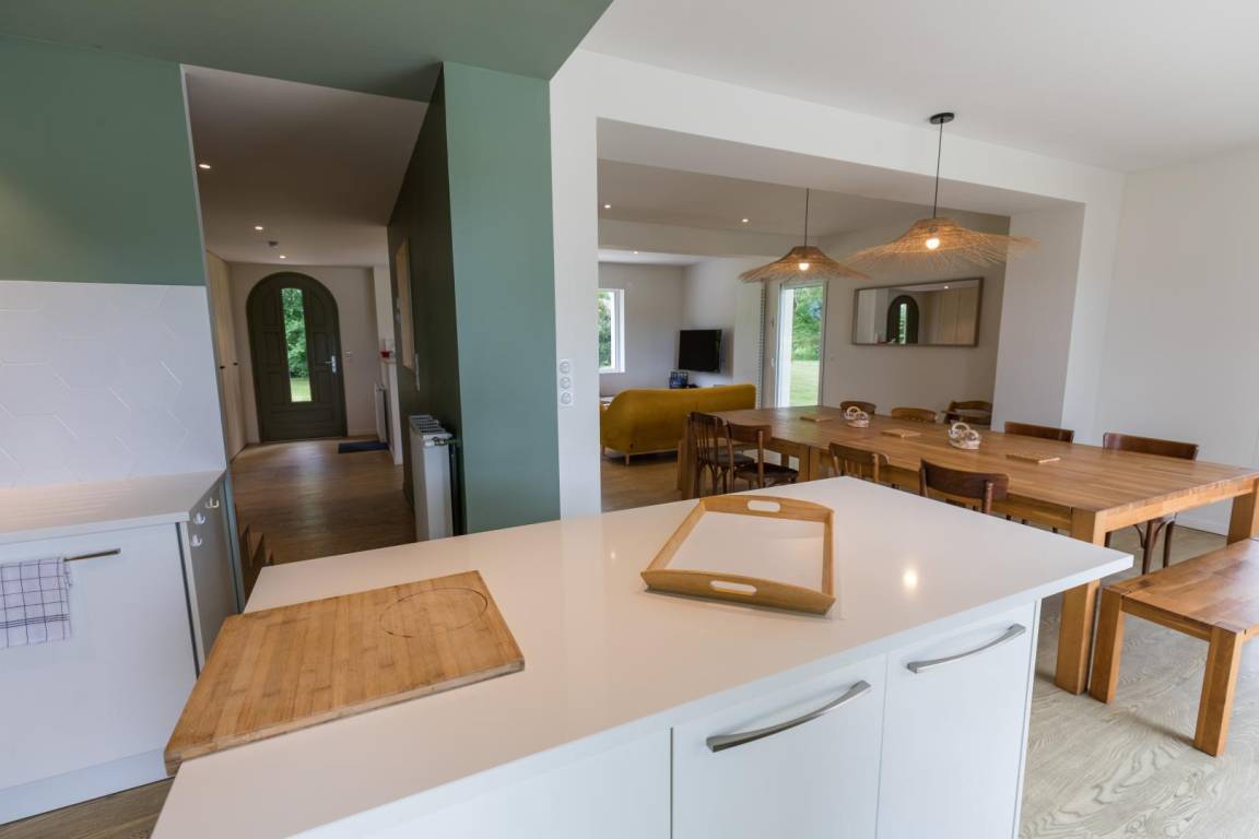 „En quelques mots: Un propriétaire arrangeant et disponible même à distance. L'accueil par Marion a été très agréable et efficace. La situation de la Villa n'est qu'à 30 minutes de la côte, à quelques minutes à pieds de commerces de proximité et en pleine nature au milieu de chênes magnifique. Le voisinage est soit discret soit sympathique. La villa est idéale, décorée avec soin sans trop que tout nous semble fragile. Idéal en famille ou entre amis. La salle de jeu a été beaucoup apprécié des enfants. Les chambres, salle de bain, espace commun sont vastes et très agréables. Une adresse que nous gardons en tête pour y revenir très probablement et que nous partageons volontier ! Bravo aux propriétaires et surtout merci de nous en faire profiter !“