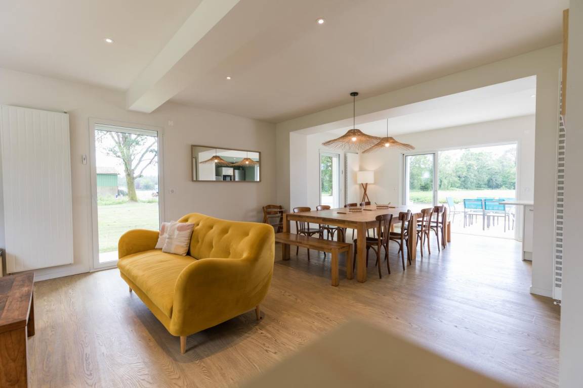 „Maison très agréable, calme et confortable. Idéale quand on est nombreux: 3 familles. On avait pas du tout l'impression de se marcher dessus. La piscine a été très appréciée par les petits et les grands. La cuisine, le salon, la terrasse tout à côté est un vrai plus pour les repas. Au niveau équipement cuisine, c'était bien complet. Pour améliorer la maison je recommanderais de rajouter un peu de décoration à l'intérieur (tableau), des chaises ou petits meubles dans les chambres pour poser ses affaires, des équipements extérieurs: Salon de jardin, table de ping-pong, frites/bouées pour la piscine et aussi un peu de végétation dans le jardin côté arrière. Mais sinon c'était parfait. Merci beaucoup pour ce séjour.“