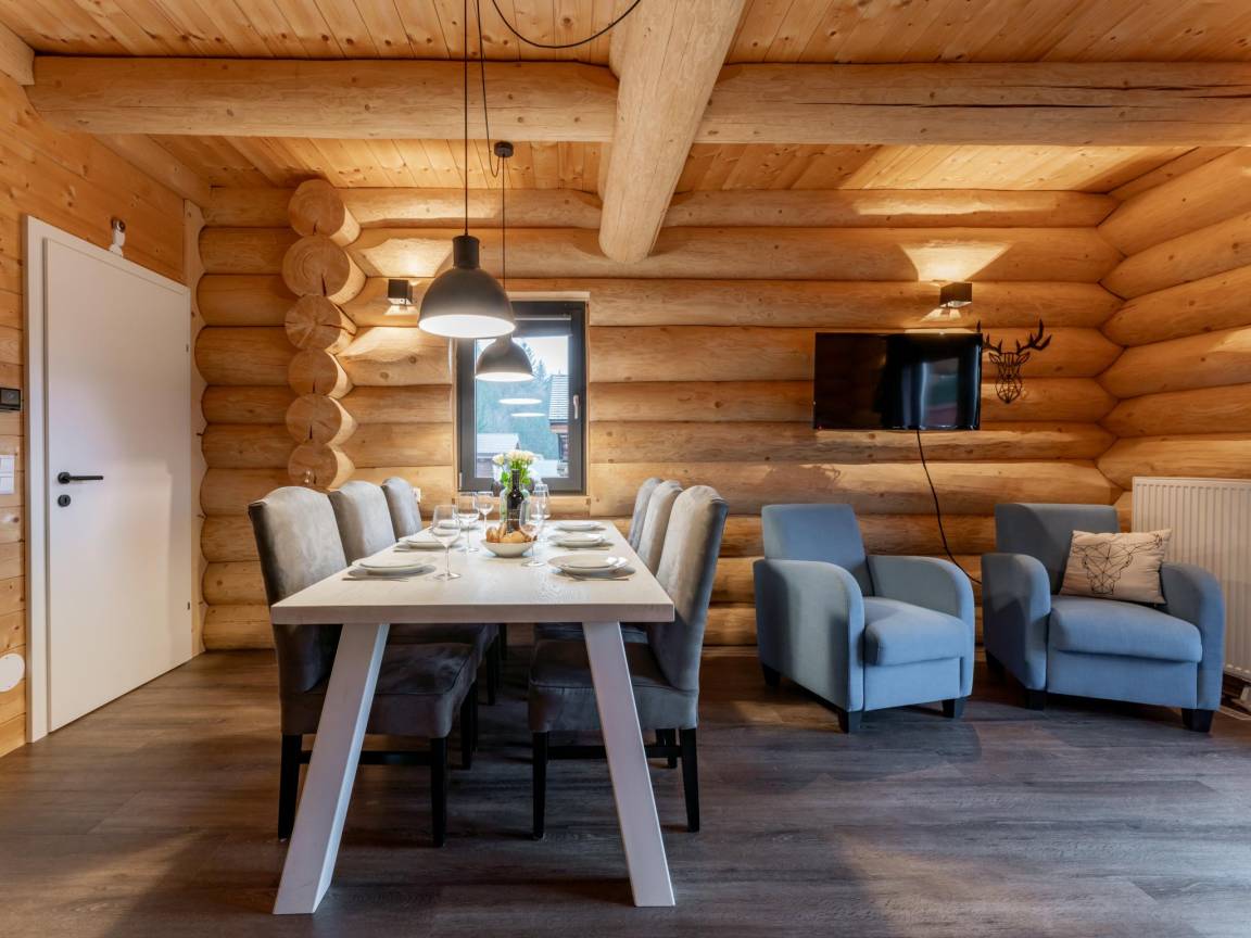 Hausbeschreibung : Nur wenige Autominuten vom Top-Ski- und Wandergebiet Nassfeld entfernt liegt dieses schöne, aus massiven Baumstämmen gebaute Chalet inmitten der Natur. Das Chalet bietet einen spektakulären Blick auf die umliegenden Berge und schneebedeckten Skipisten. In einem kleinen Ferienpark gelegen, bietet das Chalet Ruhe und Privatsphäre und Sie können hier sowohl den Winter als auch den Sommer genießen. Die schöne Terrasse und der Platz rund um die Chalets machen es zum idealen Ort für Ihren Urlaub