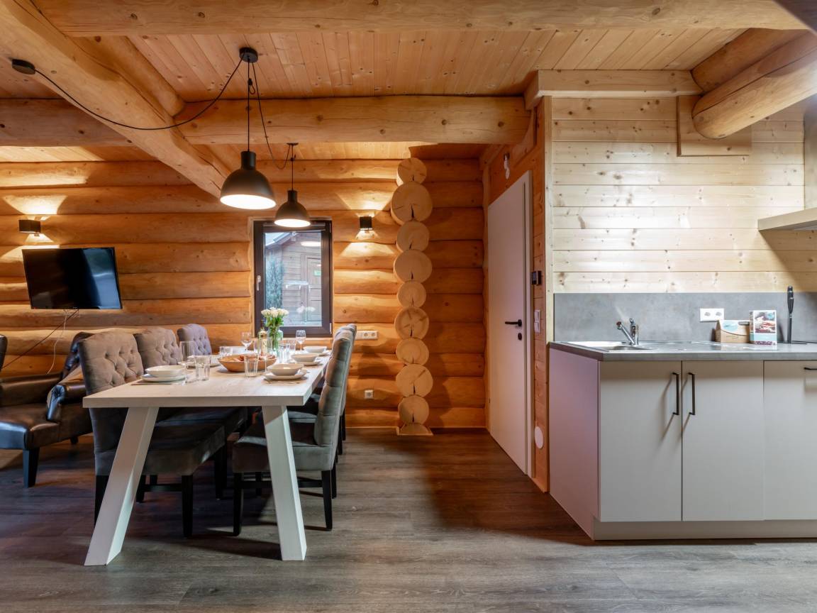 Hausbeschreibung : Nur wenige Autominuten vom Top-Ski- und Wandergebiet Nassfeld entfernt liegt dieses schöne, aus massiven Baumstämmen gebaute Chalet inmitten der Natur. Das Chalet bietet einen spektakulären Blick auf die umliegenden Berge und schneebedeckten Skipisten. In einem kleinen Ferienpark gelegen, bietet das Chalet Ruhe und Privatsphäre und Sie können hier sowohl den Winter als auch den Sommer genießen. Die schöne Terrasse und der Platz rund um die Chalets machen es zum idealen Ort für Ihren Urlaub