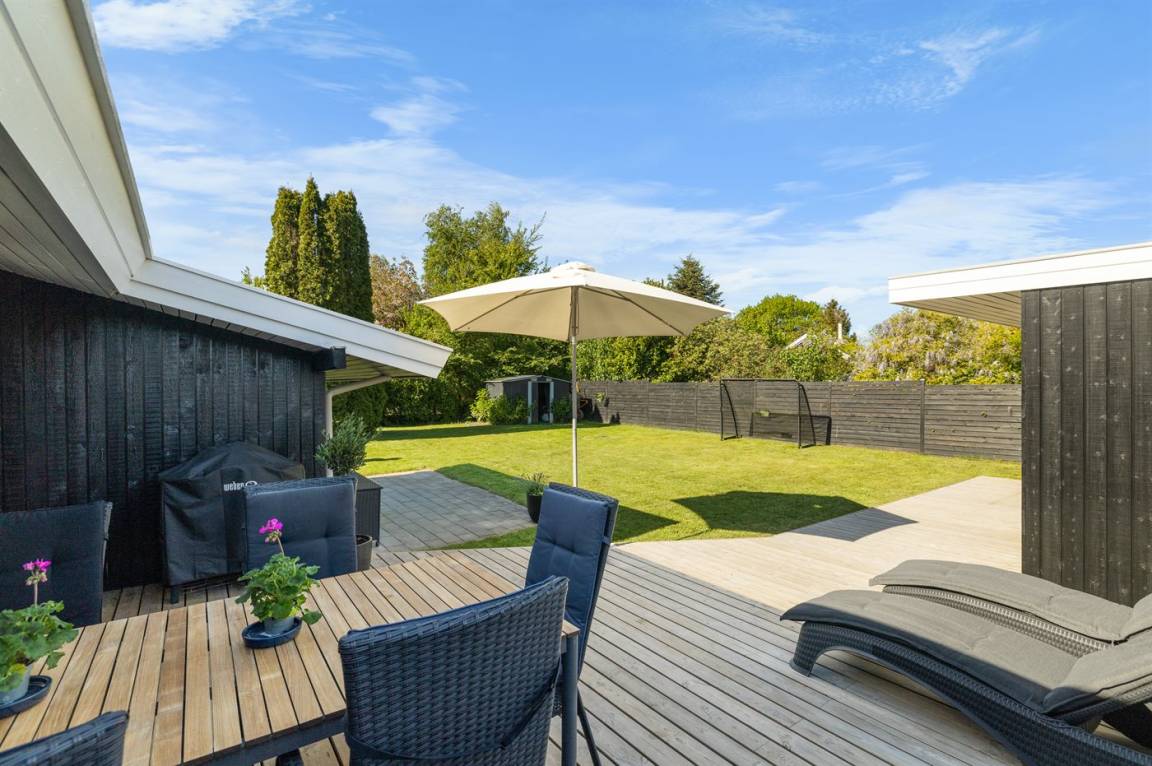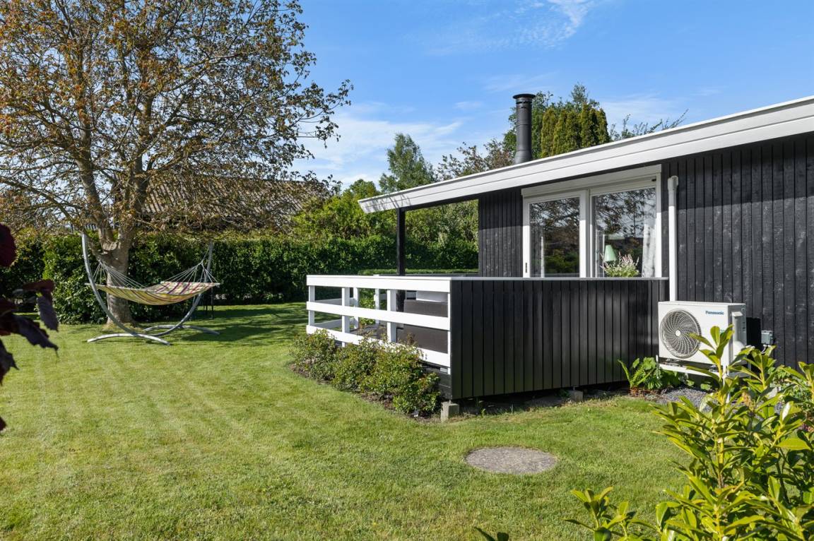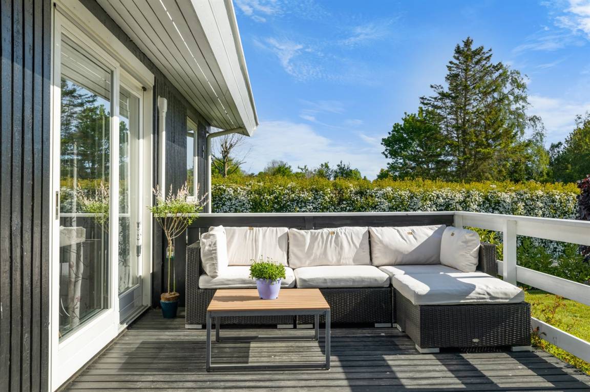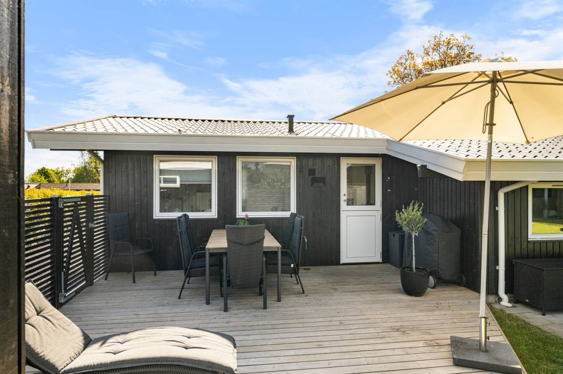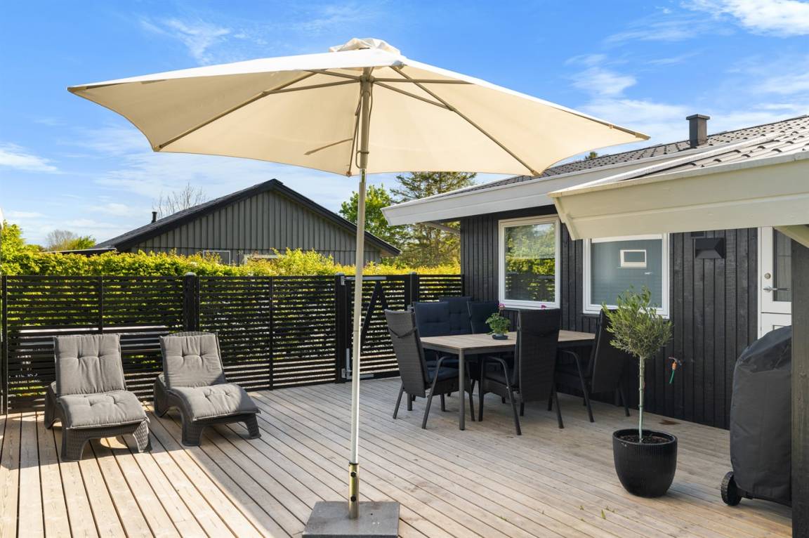 Ein schönes, modernisiertes Ferienhaus mit mehreren guten Terrassen rund ums Haus. Hier findest du sowohl eine ungestörte Terrasse hinter dem Haus und eine Terrasse vor dem Haus sowie eine überdachte Terrasse. Es gibt es daher immer eine Terrasse, wo du die Sonne genießen oder an windigen Tagen Schutz finden kannst.