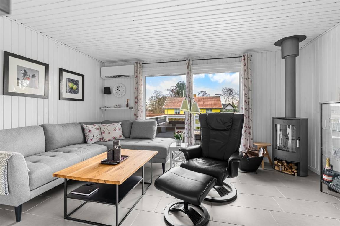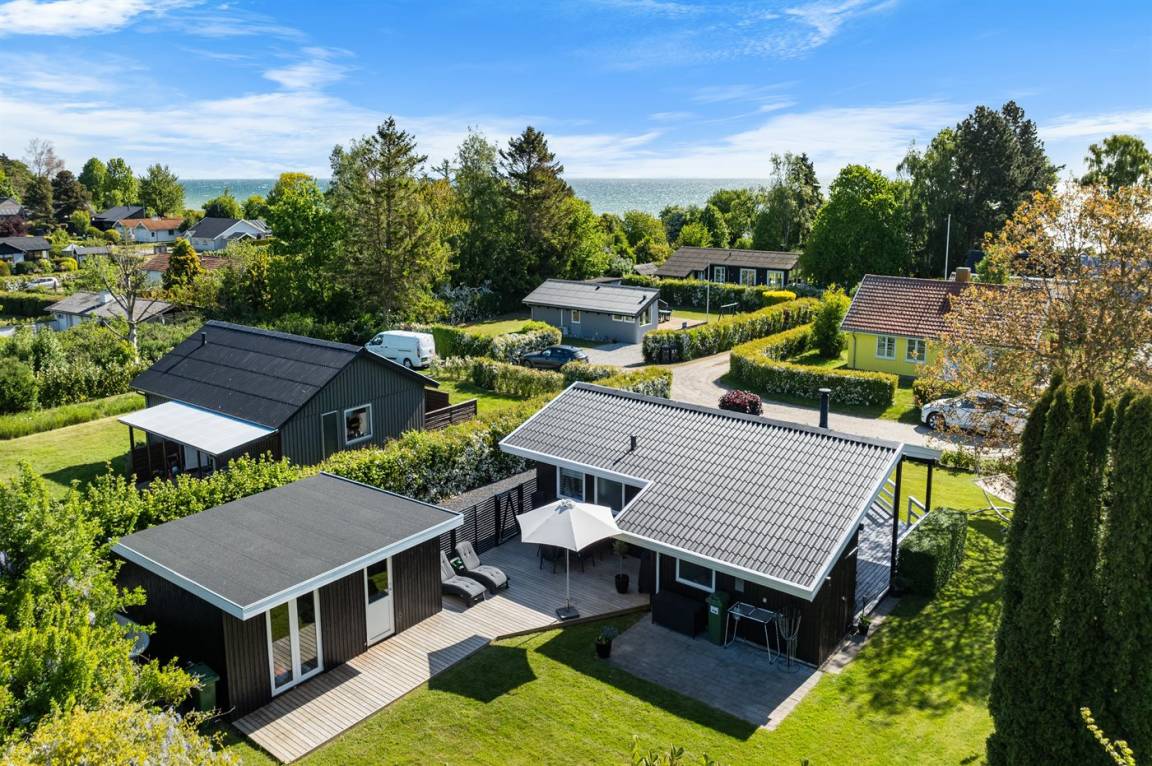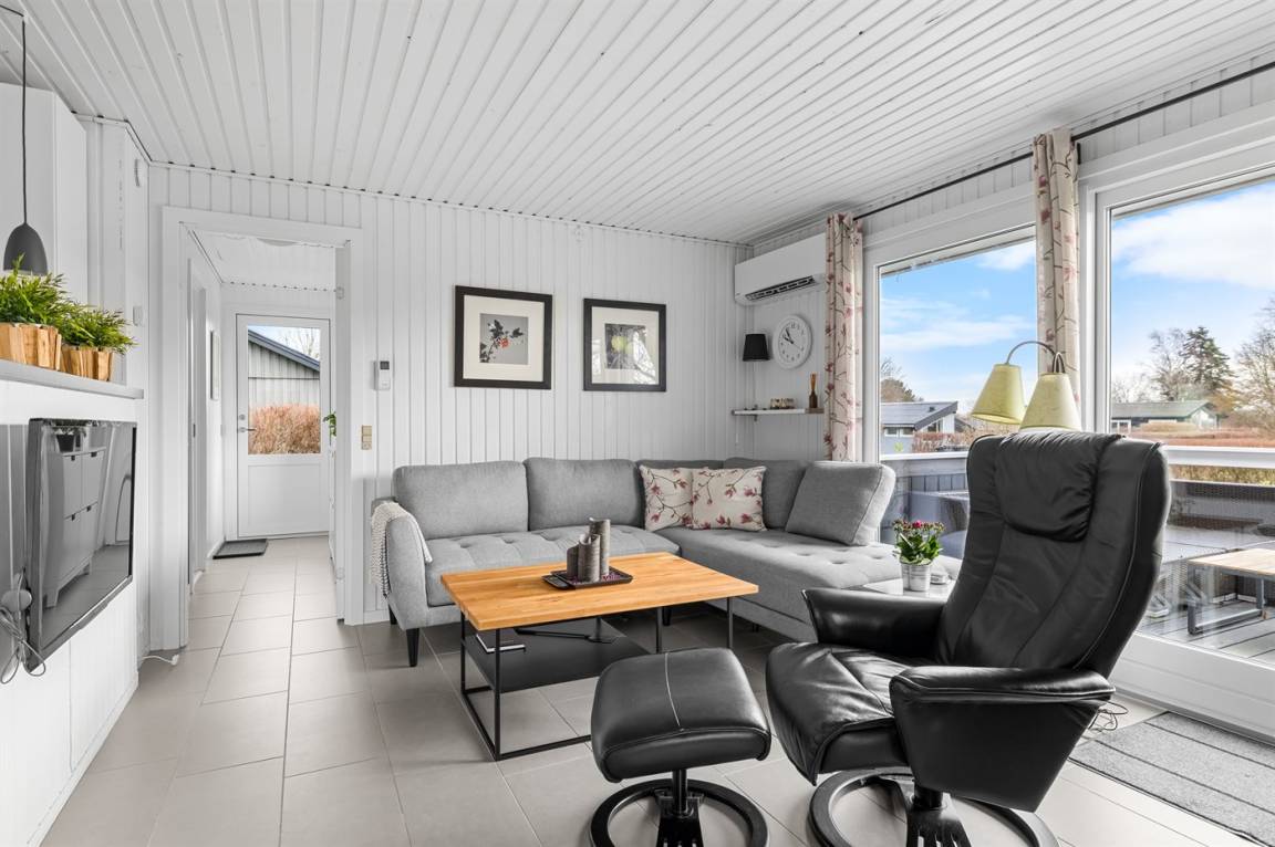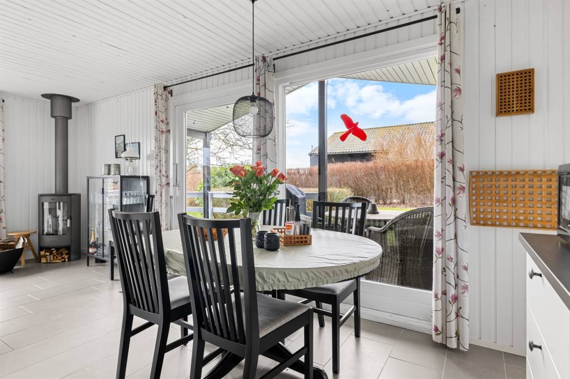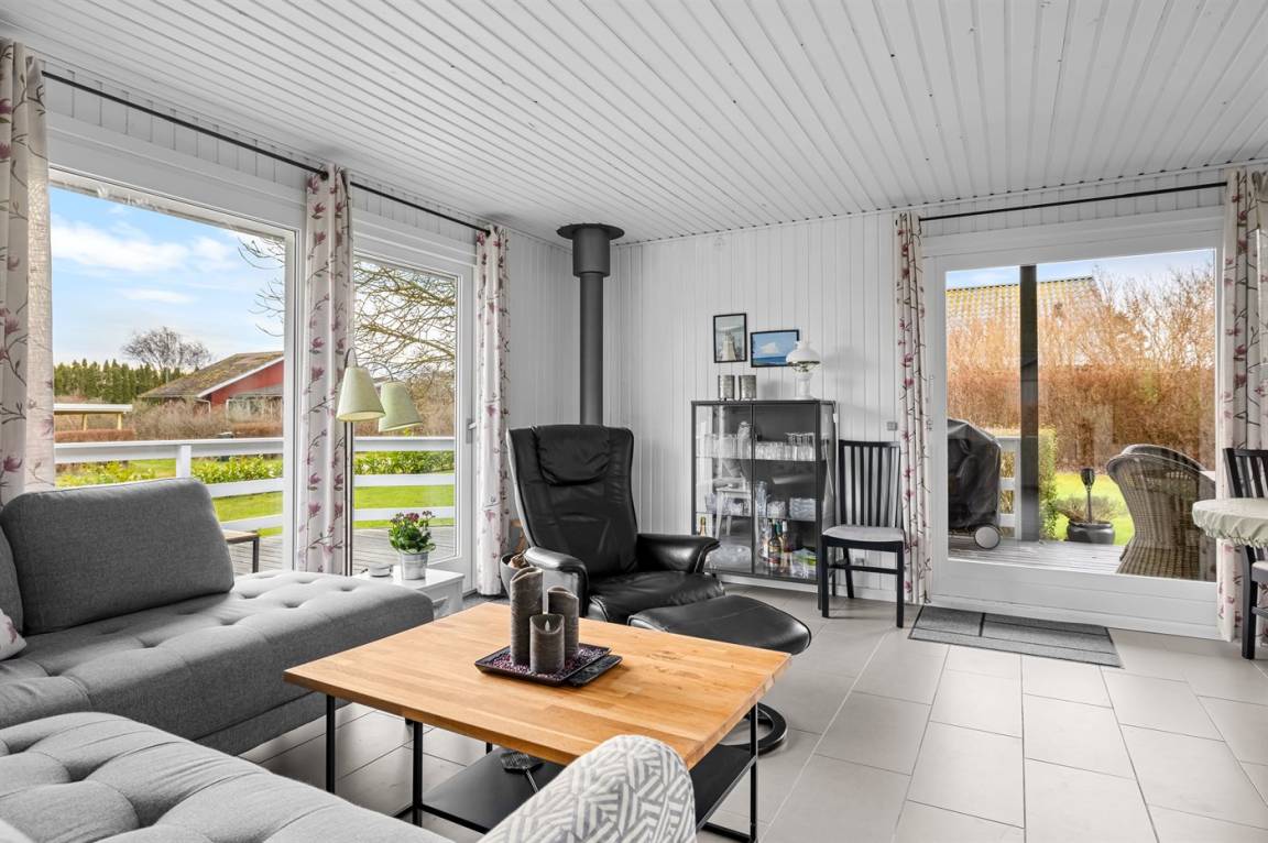 Ein schönes, modernisiertes Ferienhaus mit mehreren guten Terrassen rund ums Haus. Hier findest du sowohl eine ungestörte Terrasse hinter dem Haus und eine Terrasse vor dem Haus sowie eine überdachte Terrasse. Es gibt es daher immer eine Terrasse, wo du die Sonne genießen oder an windigen Tagen Schutz finden kannst.