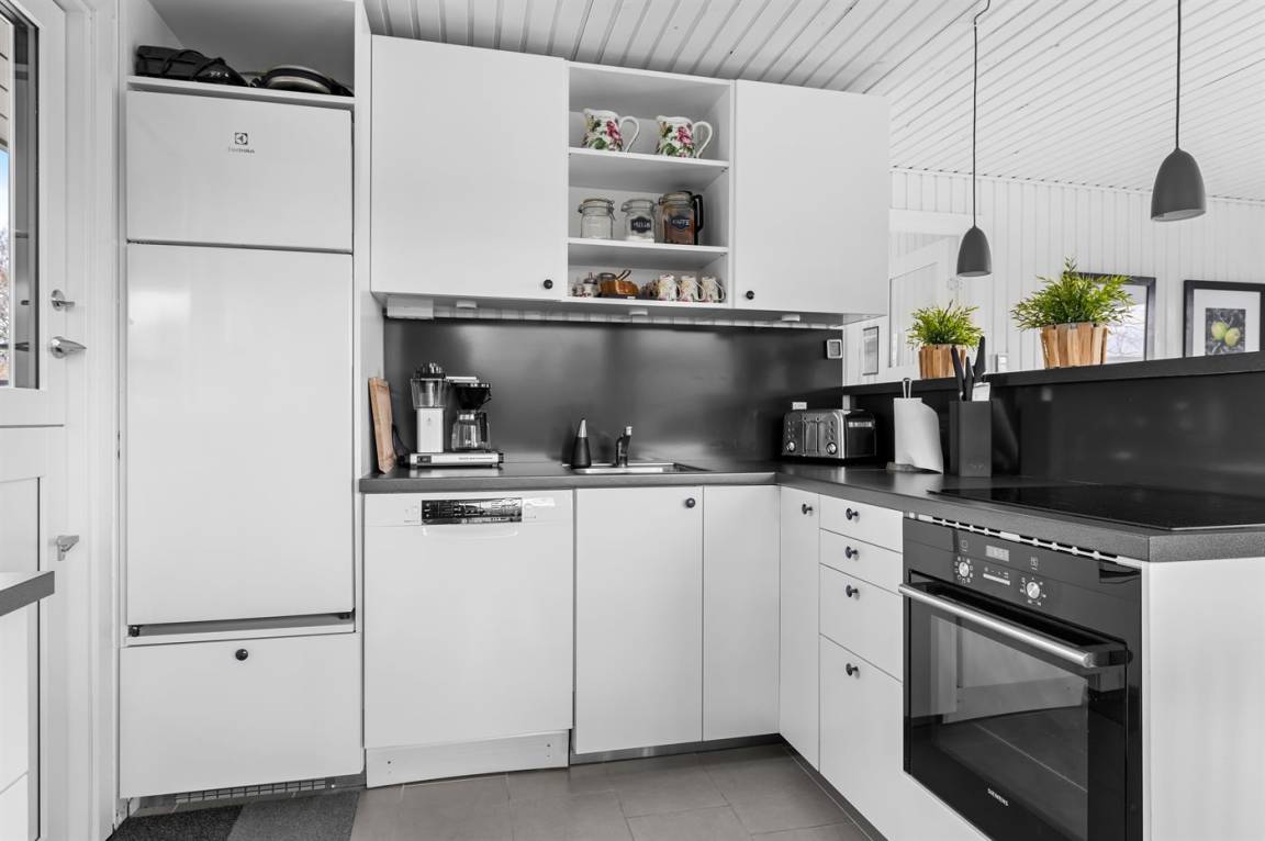 KücheDie Küche ist mit Kühlschrank ausgestattet. Außerdem gibt es 4 Induktions-Kochzonen, Umluftofen, Mikrowelle sowie Geschirrspüler.