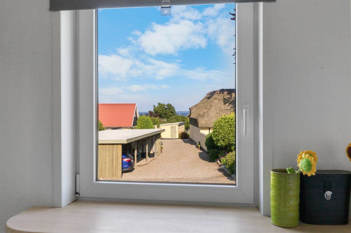 DraußenDie Ferienunterkunft liegt auf einem 780 m² großen Gartengrundstück. Die Entfernung zum Meer beträgt 200 m. Die nächste Einkaufsmöglichkeit liegt 300 m entfernt. Es steht ein 20 m² Terrassenareal zur Verfügung. Geräteraum. Parkplatz auf dem Grundstück.