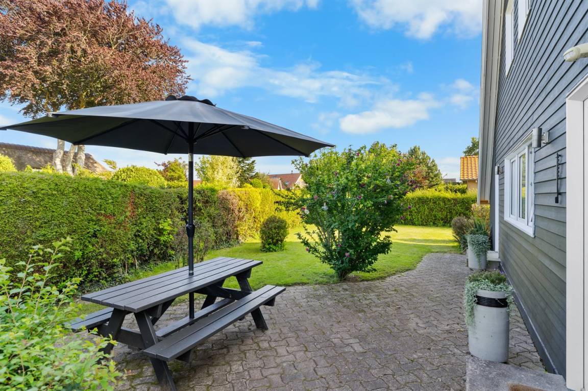 Das Haus bietet viel Platz drinnen, und im uneinsehbaren Garten gibt es reichlich Raum für Aktivitäten im Freien.
