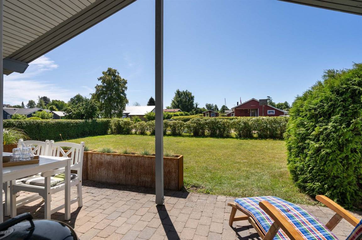 DraußenDie Ferienunterkunft liegt auf einem 800 m² großen Gartengrundstück. Die Entfernung zum Meer beträgt 200 m. Es gibt einen Badesteg in der Nähe. Die nächste Einkaufsmöglichkeit liegt 1000 m entfernt. Es steht ein 15 m² Terrassenareal zur Verfügung. Außerdem gibt es 24 m² überdachte Terrasse. Es steht ein Grill zur Verfügung. Parkplatz auf dem Grundstück.