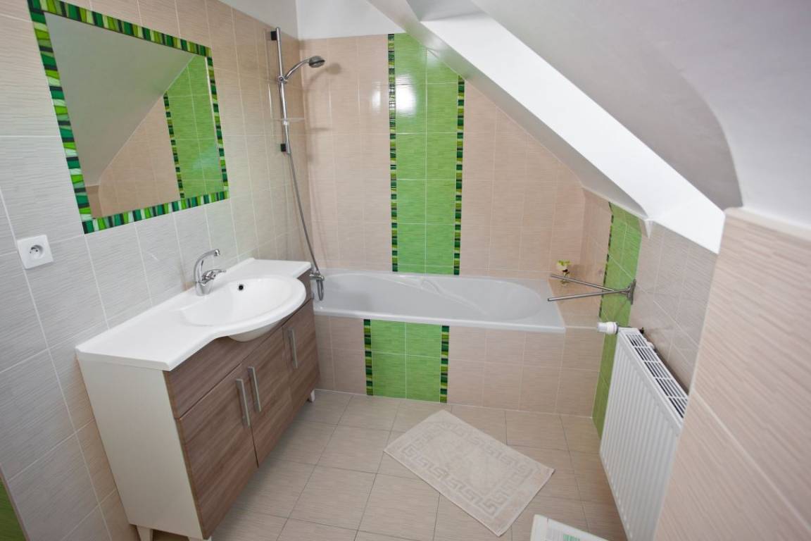 ein Schlafzimmer mit Queensize-Bett (160 x 200 cm) und eigenem Badezimmer mit Badewanne und WC,