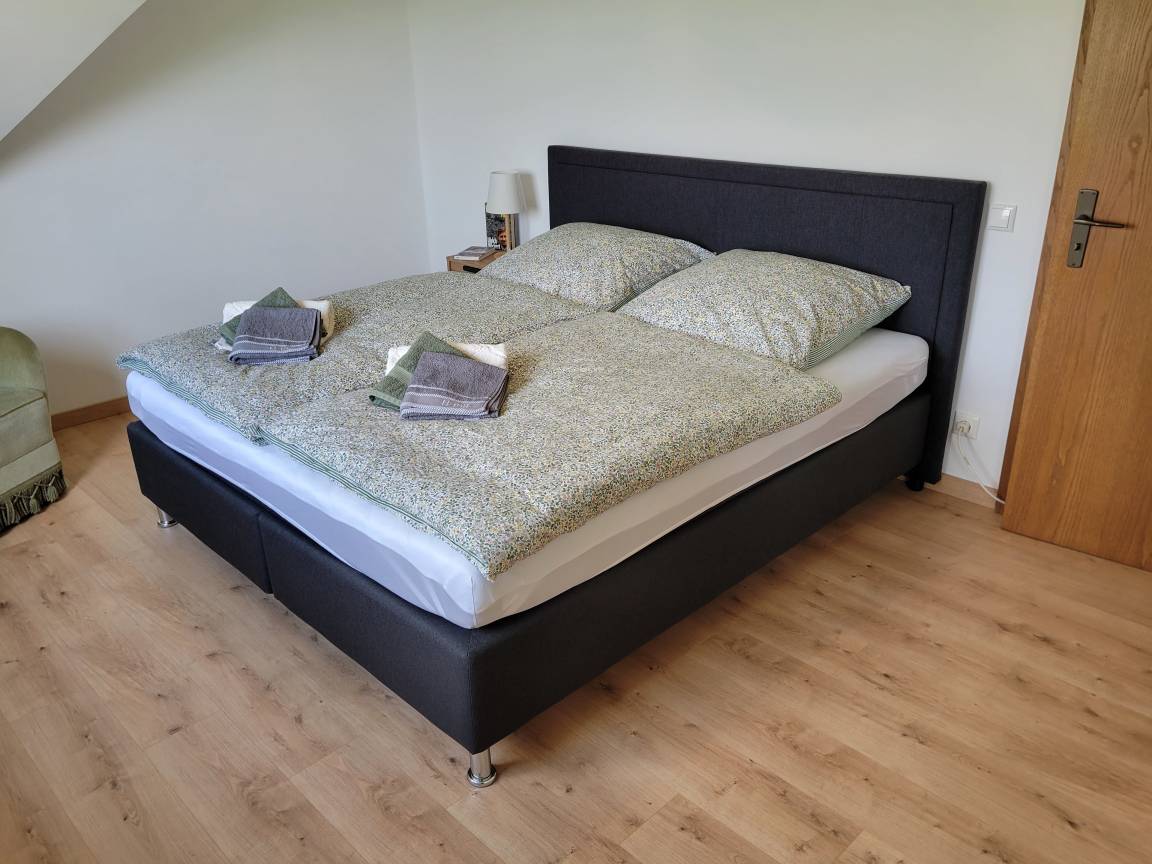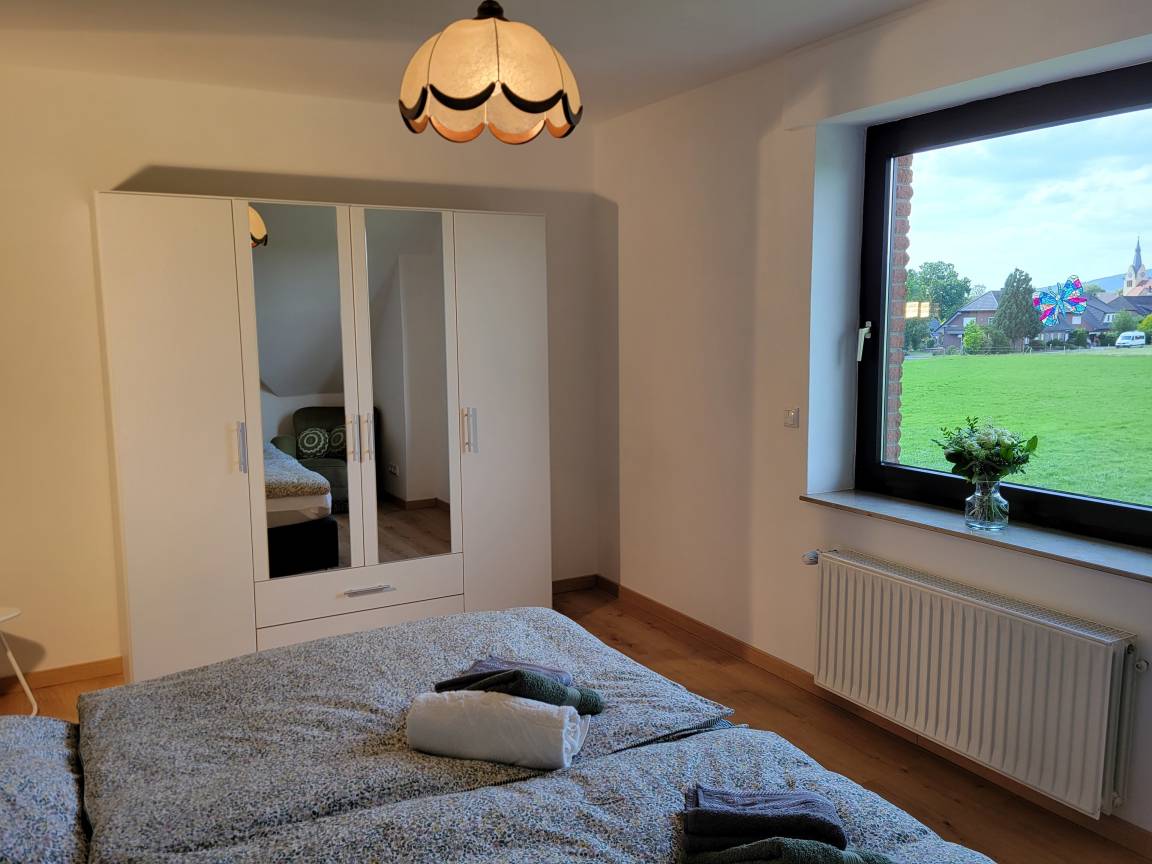 Das Schlafzimmer mit Blick auf den Ort und den Teutoburger Wald und dem Geräusch grasender Pferde lässt Sie ruhig und entspannt schlafen.