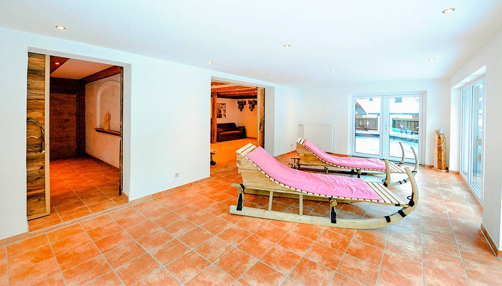 Im Haus: Fahrstuhl. Kleiner Wellnessbereich mit Infrarot-Wärmekabine, Dusche, Ruheliegen. Spielraum mit Tischtennisplatte, Kicker. Pro Fewo ein beheizbarer Skischrank mit Schuhtrockner. PKW Stellplätze am Haus.