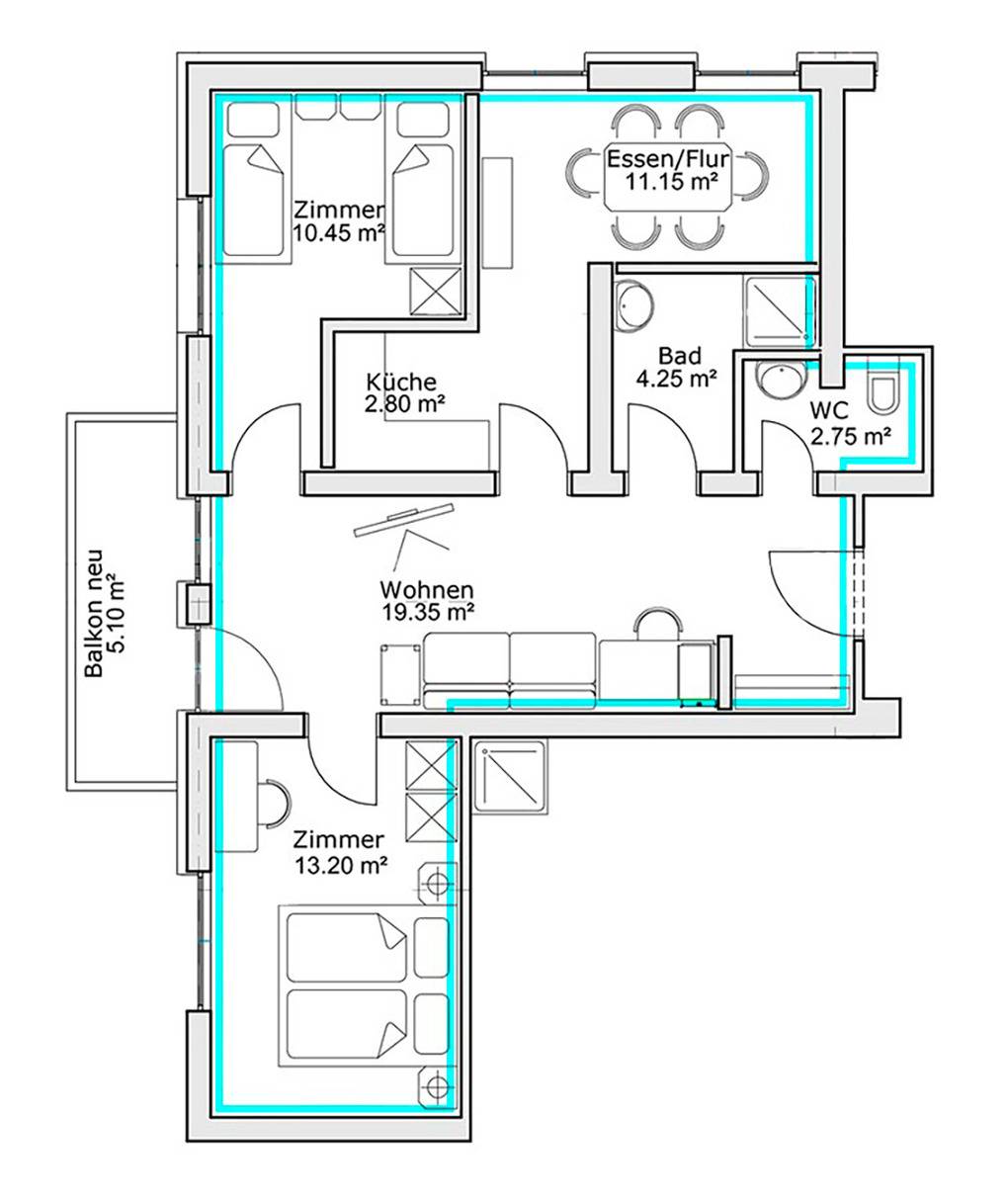65 m² Ferienwohnung ∙ 2 Schlafzimmer ∙ 4 Gäste