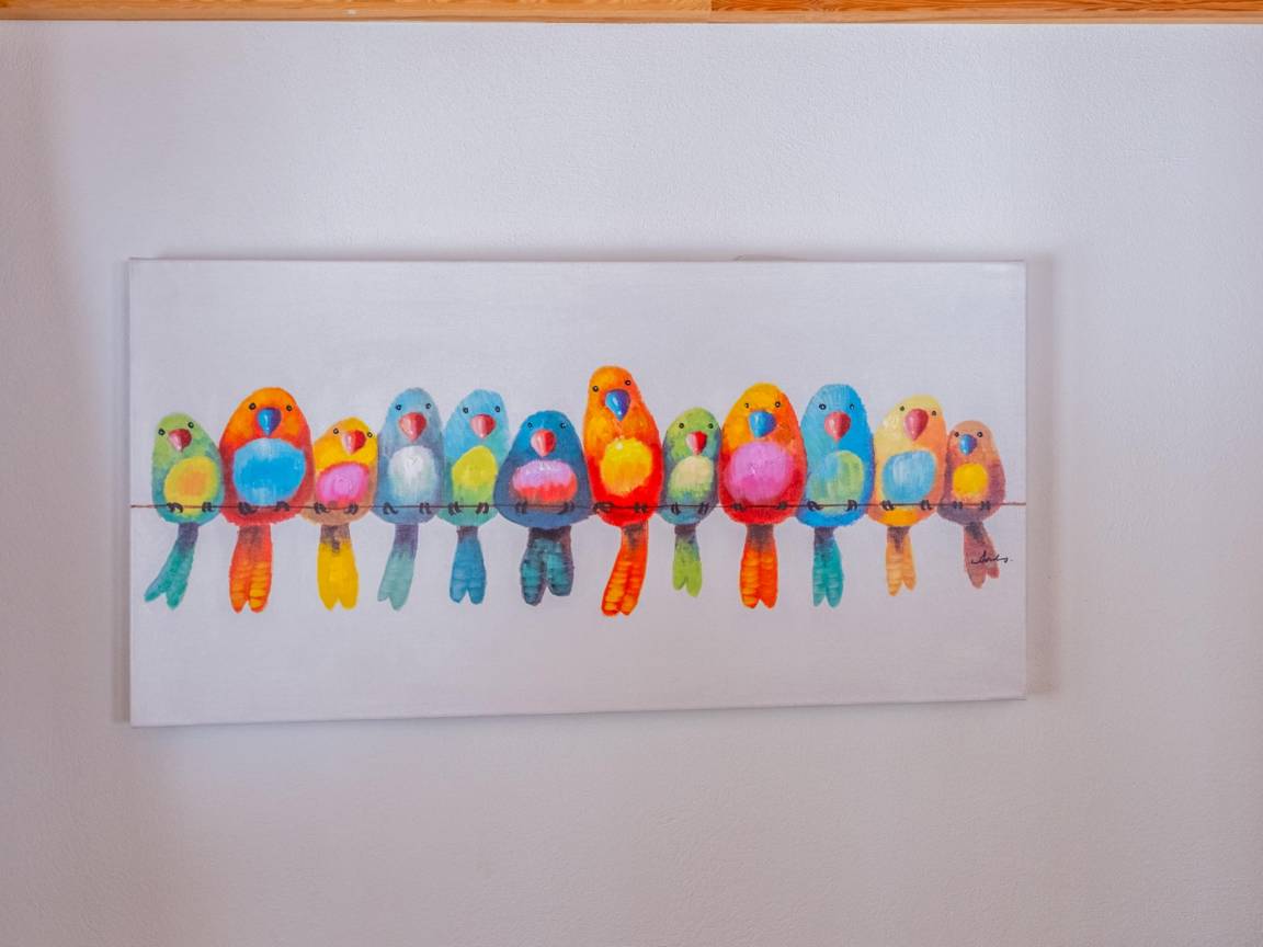 Layout : Parterre: Wohnzimmer mit Doppelschlafcouch, TV, Esstisch(6 Personen), Sitzecke , offene Küche mit Wasserkocher, Kochherd(4 Kochplatten), Kaffeemaschine(Filter), Backofen, Kühl-/Gefrierkombination , Schlafzimmer mit Doppelbett , Badezimmer mit Dusche, Waschbecken, Toilette