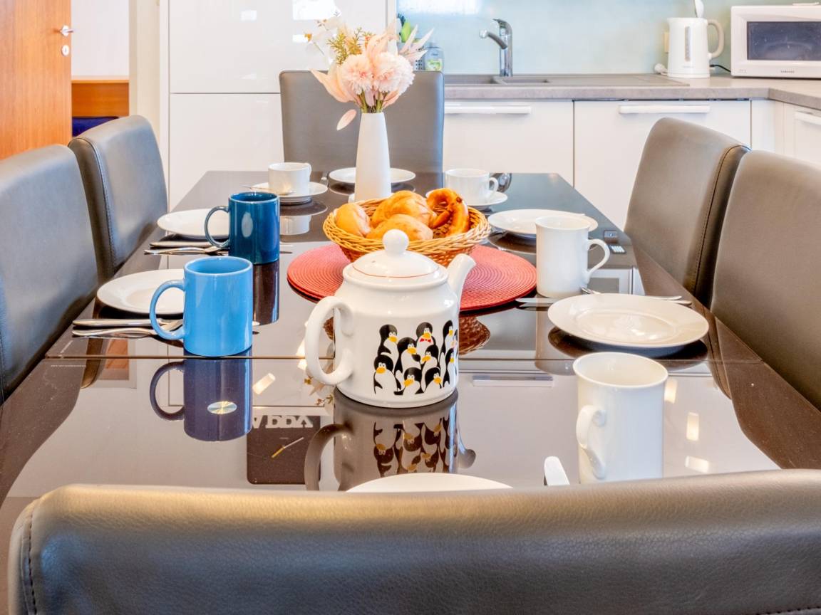 In der 3. Etage: Wohnzimmer mit TV(smart TV), Sitzecke , offene Küche mit Esstisch(6 Personen), Wasserkocher, Toaster, Kochherd, Kaffeemaschine(cups), Backofen, Mikrowelle, Geschirrspüler, Kühl-/Gefrierkombination, Wäschetrockner, Waschmaschine , Schlafzimmer mit Doppelbett , Schlafzimmer mit 2x Einzelbett , Schlafzimmer mit Doppelbett(140 x 200 cm) , Badezimmer mit Badewanne mit Dusche, Waschbecken , Toilette