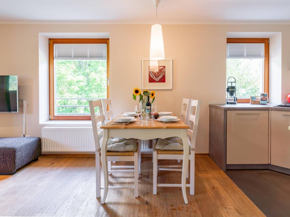 Frisch und modern. Die voll ausgestattete Wohnung hat alles für einen unbeschwerten Aufenthalt. Der Balkon auf der Westseite lädt dazu ein, sich nach einem aktiven Tag zu entspannen und die untergehende Sonne mit dem leicht murmelnden Bach im Hintergrund zu genießen.