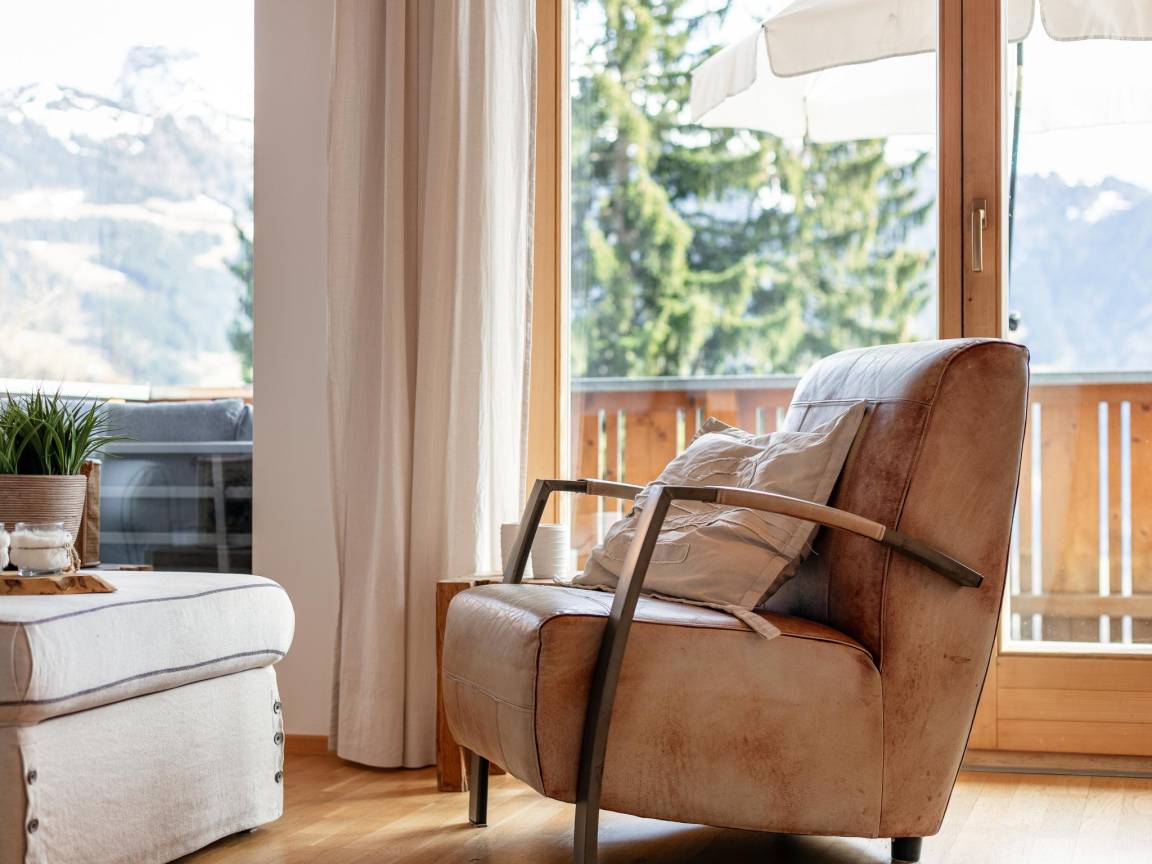 Hausbeschreibung : Sie wohnen im linken Flügel dieses gemütlichen Chalets, das hochwertig und mit viel Holz eingerichtet ist. Genießen Sie im Wohnzimmer das knisternde Feuer des Holzofens und blicken Sie durch die großen Fenster auf das Tal. Durch die Flügeltüren gelangen Sie auf den Balkon mit Blick auf die Ahornspitze, oberhalb von Mayrhofen. Hier werden Sie einen unvergesslichen Urlaub verbringen! Das Chalet ist für maximal 4 Erwachsene und 2 Kinder geeignet, da ein Kinderstockbett vorhanden ist