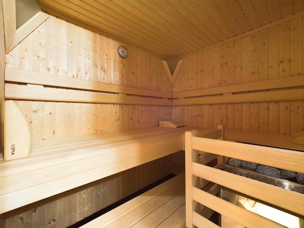 Layout : Parterre: Diele, Wohnzimmer mit TV(Flatscreen, Satellit), Dekokamin , offene Küche mit Wasserkocher, Kochherd(4 Kochplatten, Ceranfeld), Dunstabzugshaube, Kaffeemaschine(Filter, pads), Backofen, Kombi-Mikrowelle, Geschirrspüler, Kühlschrank, Tiefkühlschrank , Schlafzimmer mit Doppelbett(180 x 200 cm) , Badezimmer mit Waschbecken, Dusche, Sauna(alleinige Nutzung, 4 Personen), Toilette , Toilette
