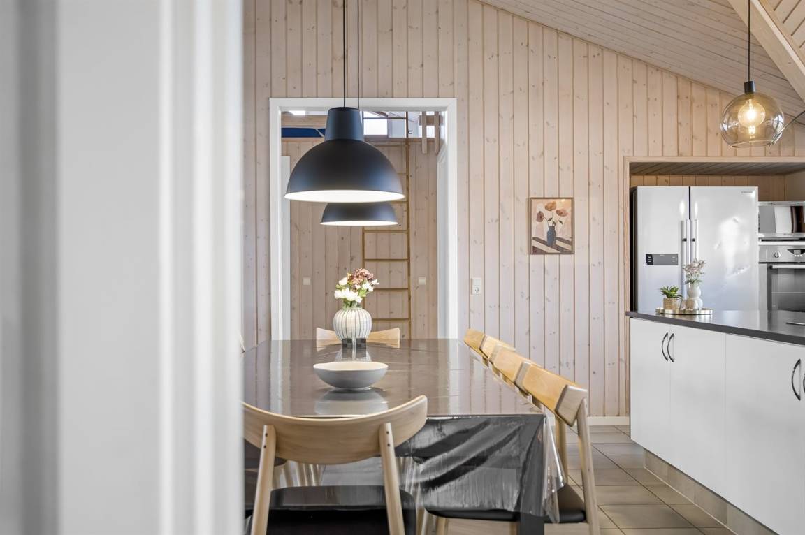 „The vacation at the holiday home: Det var et dejligt hus. det eneste vi manglede var et havebord mod øst The local office: Da vi ikke kunne finde nøglen, sendte det lokal bureauet meget hurtigt en mand, som fandt nøglen. Det bvar vi meget glad for. Det var også en god service, at de fortalte os, at huset var klar til indflytning tidligere. The holiday home itself: Dejligt lyst og venligt hus med to gode terrasser. Dejlig beliggenhed med udsigt mod vest til mange træer, - godt skærmet mod naboerne.. Mod øst ville det være godt at plante lidt, da det næste hus var tæt på: I vores uge boede der ikke nogen, så det var ikke et problem for os. Værelserne var meget fine med fine farver. og dejligt højt til loftet. Dejligt med to gode badeværelser. Der var to drømmesenge til 10 personer og ingen havehynder. Det kunne have været godt med flere drømmesenge og havehynder.“