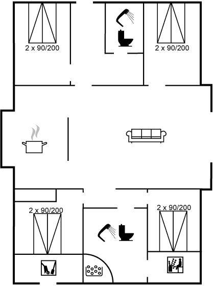 SchlafverhältnisseDie Schlafplätze verteilen sich auf 4 Schlafräume. 8 Schlafplätze in Doppelbetten. 2 Schlafplätze in Einzelbetten. 2 von diesen Schlafplätzen befinden sich im offenen Obergeschoss. Ferner steht ein Kinderbett zur Verfügung.
