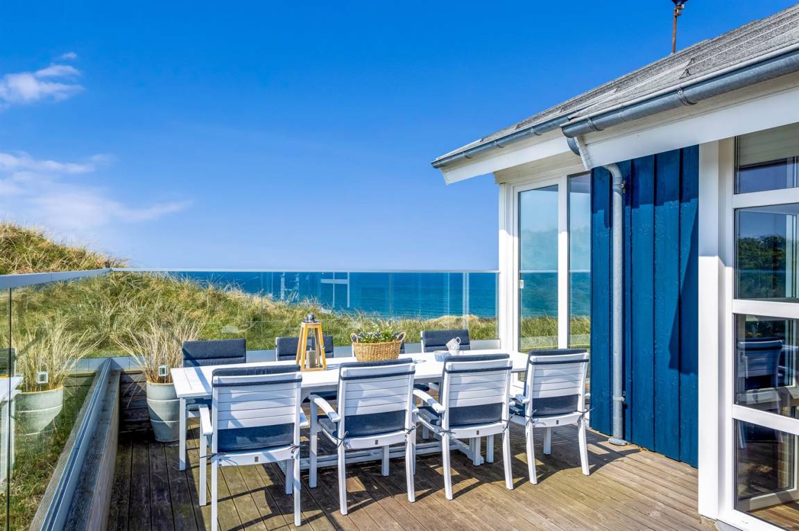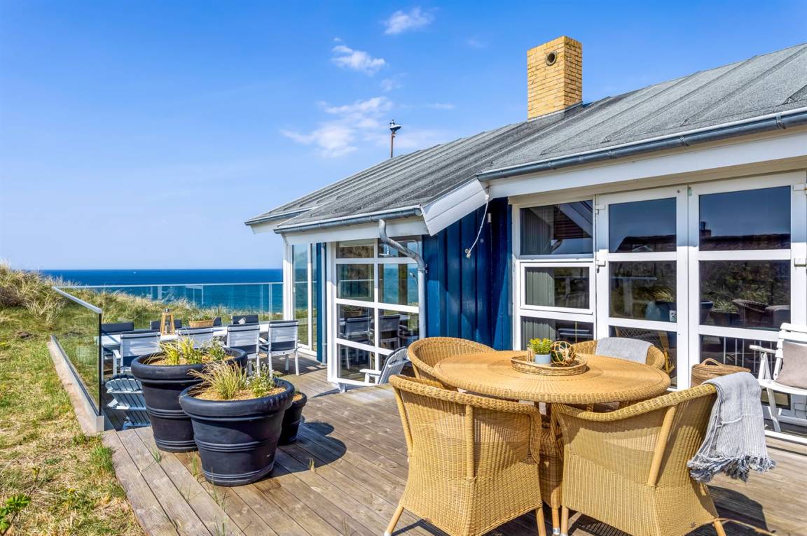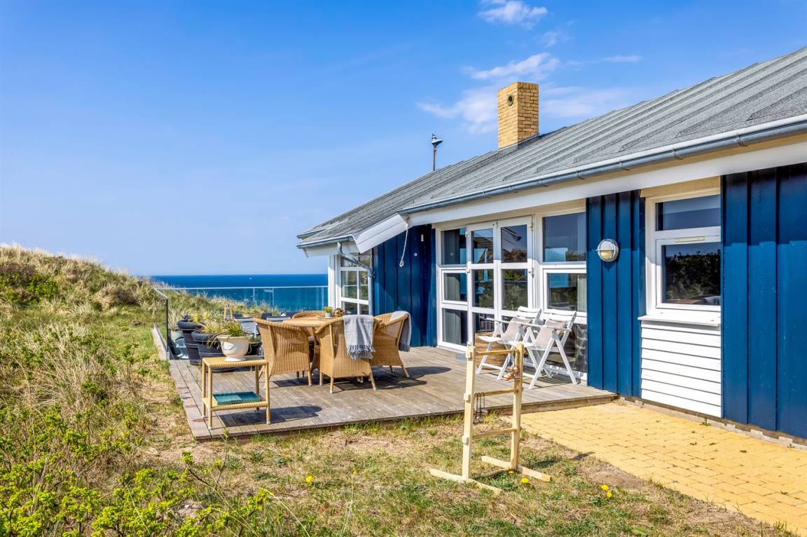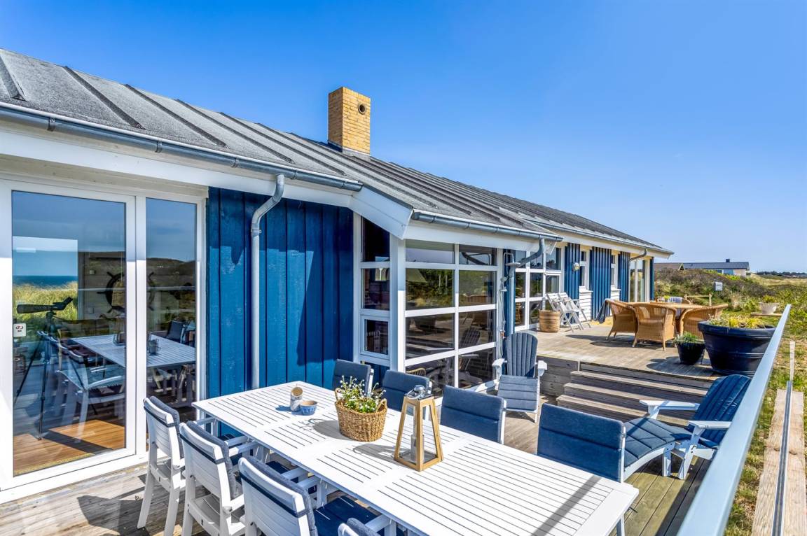 DraußenDie Ferienunterkunft liegt auf einem 2942 m² großen Dünengrundstück. Die Entfernung zum Meer beträgt 150 m. Die nächste Einkaufsmöglichkeit liegt 2000 m entfernt. Es steht ein offenes Terrassenareal zur Verfügung. Geräteraum. Außendusche. Es steht ein Grill zur Verfügung.Es steht eine Garage zur Verfügung. Parkplatz auf dem Grundstück.