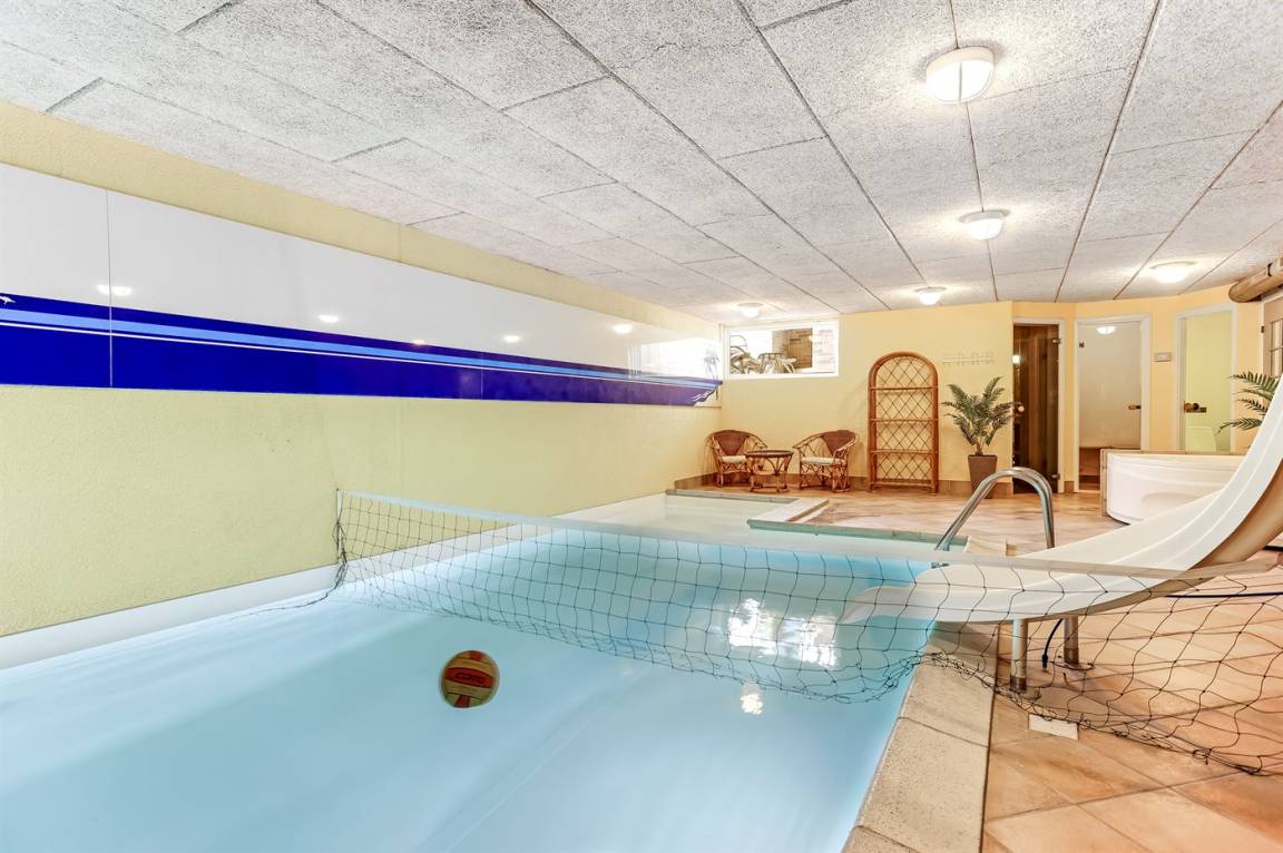 SwimmingpoolIm Swimmingpool können sich Jung und Alt gemeinsam Vergnügen. Der Swimmingpool misst bis zu 3,4 m in der Breite, 5,9 m in der Länge und bis zu 1,3 m in der Tiefe. Die Wassertemperatur liegt zwischen 24 und 28° C. Eine Wasserrutsche steht zur Verfügung.Kinderpool.