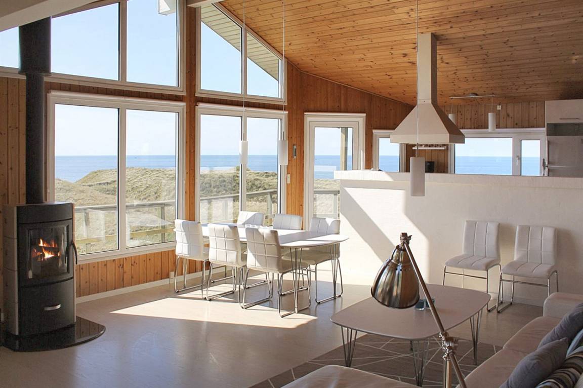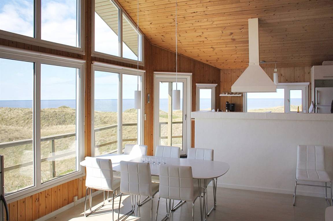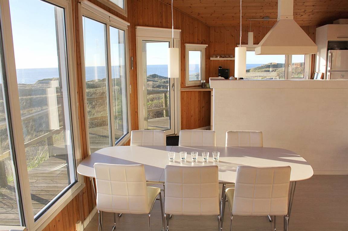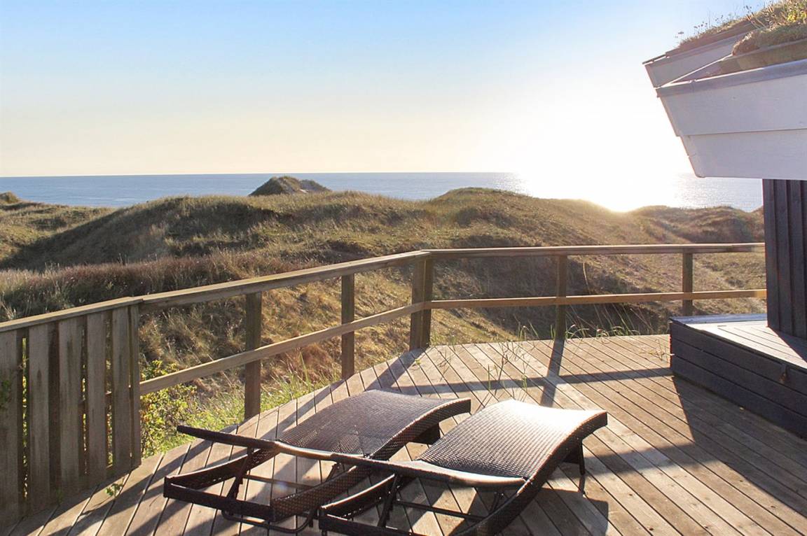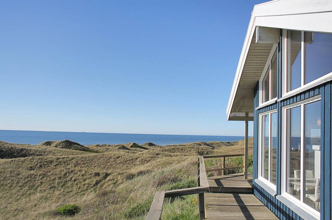 „Advice to other guests: TOP Ferienhaus mit einer traumhaften Sicht über Dünen und das Meer. Das Haus war bei unserer Ankunft sehr sauber, die Möbel in gutem Zustand. Die Ausstattung in der Küche ist sehr umfangreich, die Geräte neuwertig. Die Betten wie üblich etwas zu weich, aber immer noch sehr gut, was wir wirklich schon anders erlebt haben. Zu beachten, dass ist, dass es sich um Betten mit einer Breite von 140, 160 und 180 cm sind, man benötigt also entsprechend große Spannbettlaken für die Betten. Es gibt ausreichend Einkaufsmöglichkeiten im 3 km entfernten Hirtshals. Sehenswert ist das Ozeanum in Hirtshals und das Bunkermuseum. Bei schönem Wetter unbedingt einen Ausflug nach Skagen machen, wo sich Ost- und Nordsee treffen. Skagen liegt nur ca. 50 km entfernt vom Ferienhaus, ist also schnell zu erreichen. Wir waren 1 Woche im Winter zum relaxen dort, was uns gut gelungen ist. Das Grundstück selbst fällt eher steil ab und eignet sich für kleine Kinder nicht zum spielen. Aber man ist ruckzuck durch die Dünen am schönen breiten Strand, wo man zu Fuß nach Hirtshals wandern kann. Ich würde das Ferienhaus jederzeit wieder buchen.“