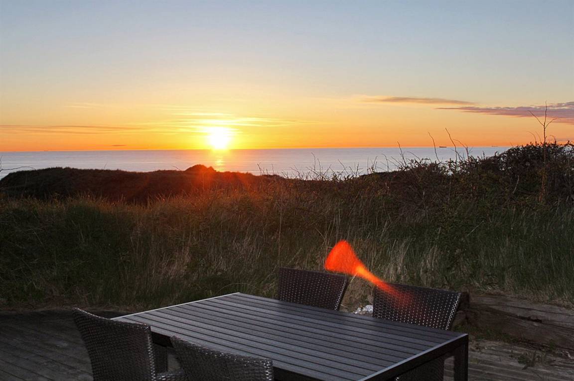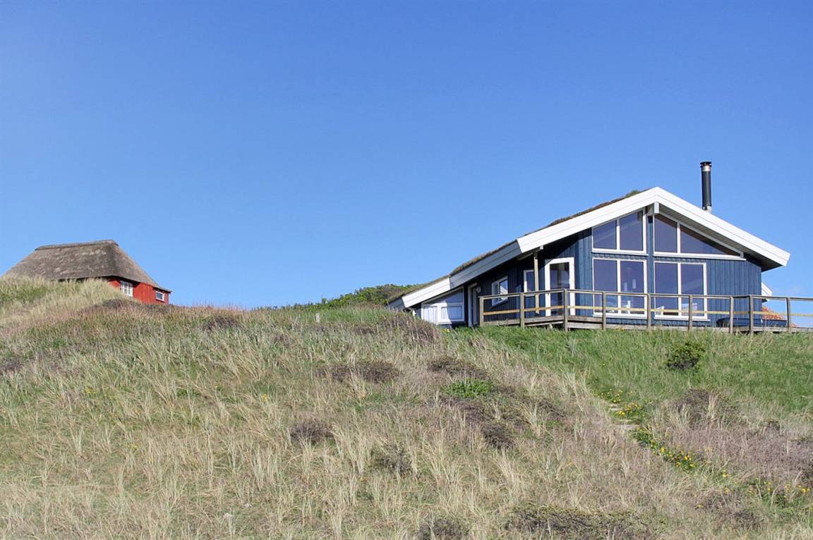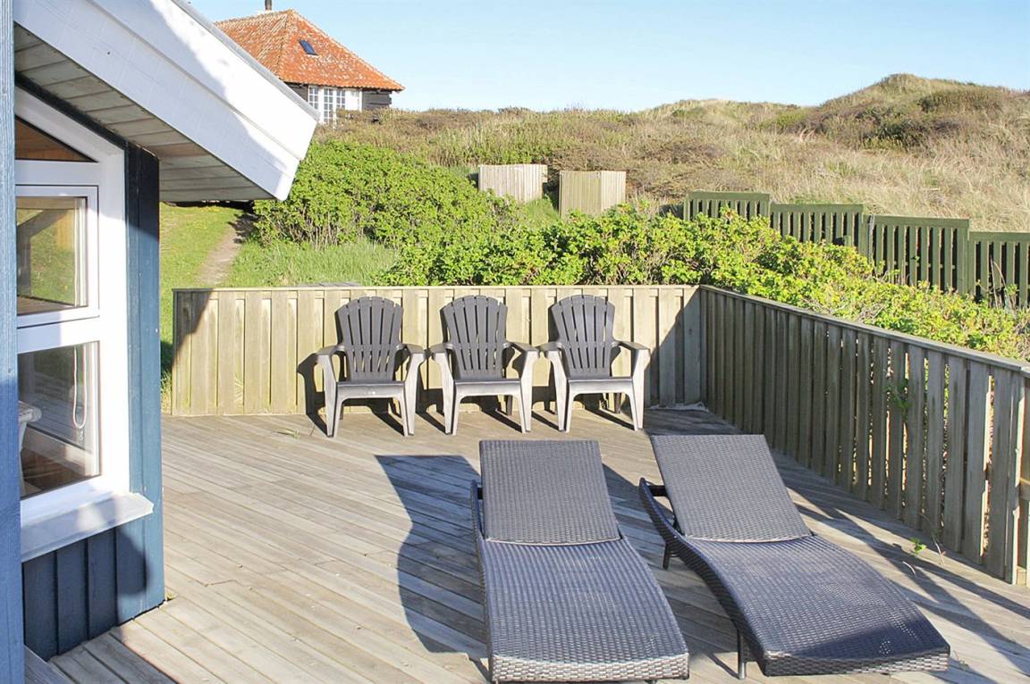 DraußenDie Ferienunterkunft liegt auf einem 3000 m² großen Dünengrundstück. Die Entfernung zum Meer beträgt 260 m. Die nächste Einkaufsmöglichkeit liegt 1000 m entfernt. Es steht ein 80 m² Terrassenareal zur Verfügung. Geräteraum. Parkplatz auf dem Grundstück.