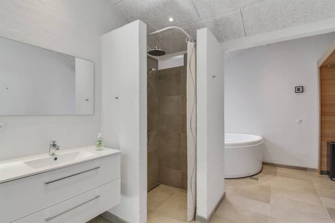 WC und BadEs gibt 2 Badezimmer mit Duschnische und 2 Toiletten. Fußbodenheizung in 2 Badezimmern. In der Sauna, die sowohl über Infrarot- als auch über normale Funktionen verfügt, kannst du dich so richtig entspannen.