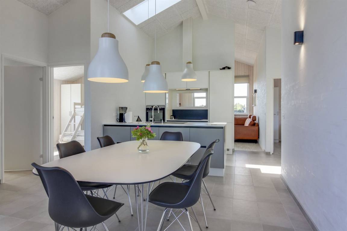 Dieses schöne, neu gebaute Ferienhaus liegt in dem Feriengebiet Tornby zwischen den Städten Hirtshals und Hjørring – nicht weit von dem schönen Badestrand und der herrlichen Natur in der Dünenplantage "Tornby Klitplantage" entfernt. Zum Haus gehören drei schöne Terrassen – hier kannst du die Sonne und Mahlzeiten im Freien genießen oder dich mit einem guten Buch entspannen. Die Einrichtung des Hauses macht es sowohl für Familien als auch für Paare, die den Urlaub unter ein und demselben Dach verbringen möchten, geeignet.