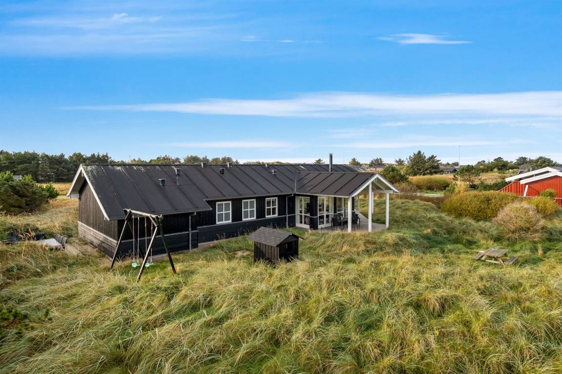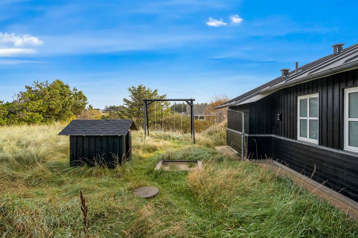 Die Ferienunterkunft liegt auf einem 2100 m² großen Naturgrundstück. Bis zum Meer sind es 656 m. Das nächste Geschäft ist 600 m weit entfernt. Zur Ferienunterkunft gehört ein 12 m² großer, offener Terrassenbereich. Zudem gibt es eine überdachte Terrasse mit 28 m². Für die kleinen Gäste sind Schaukeln, ein Sandkasten und ein Spielhaus vorhanden.